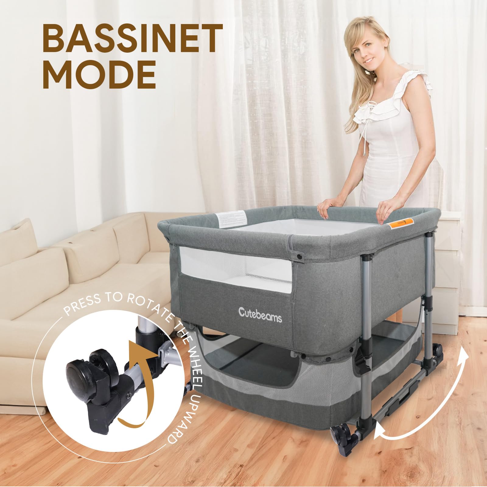 3 IN 1 TWIN BASSINET: This versatile bassinet for 2 babies seamlessly converts into a standalone crib, a bedside sleeper that attaches to the adult bed, or a self-rocking bassinet, giving you the flexibility to care for your baby at home or on the go