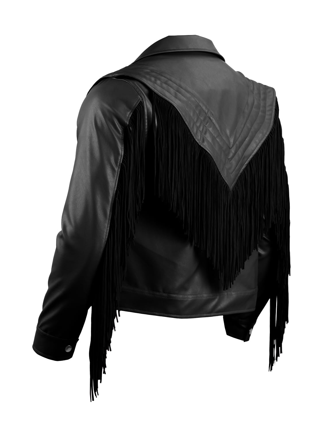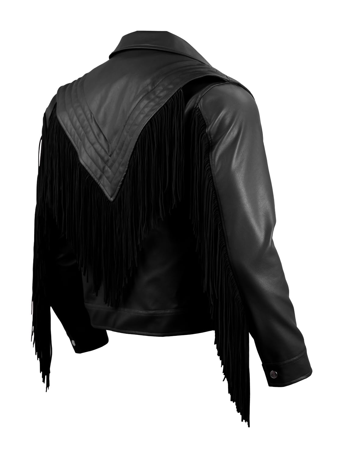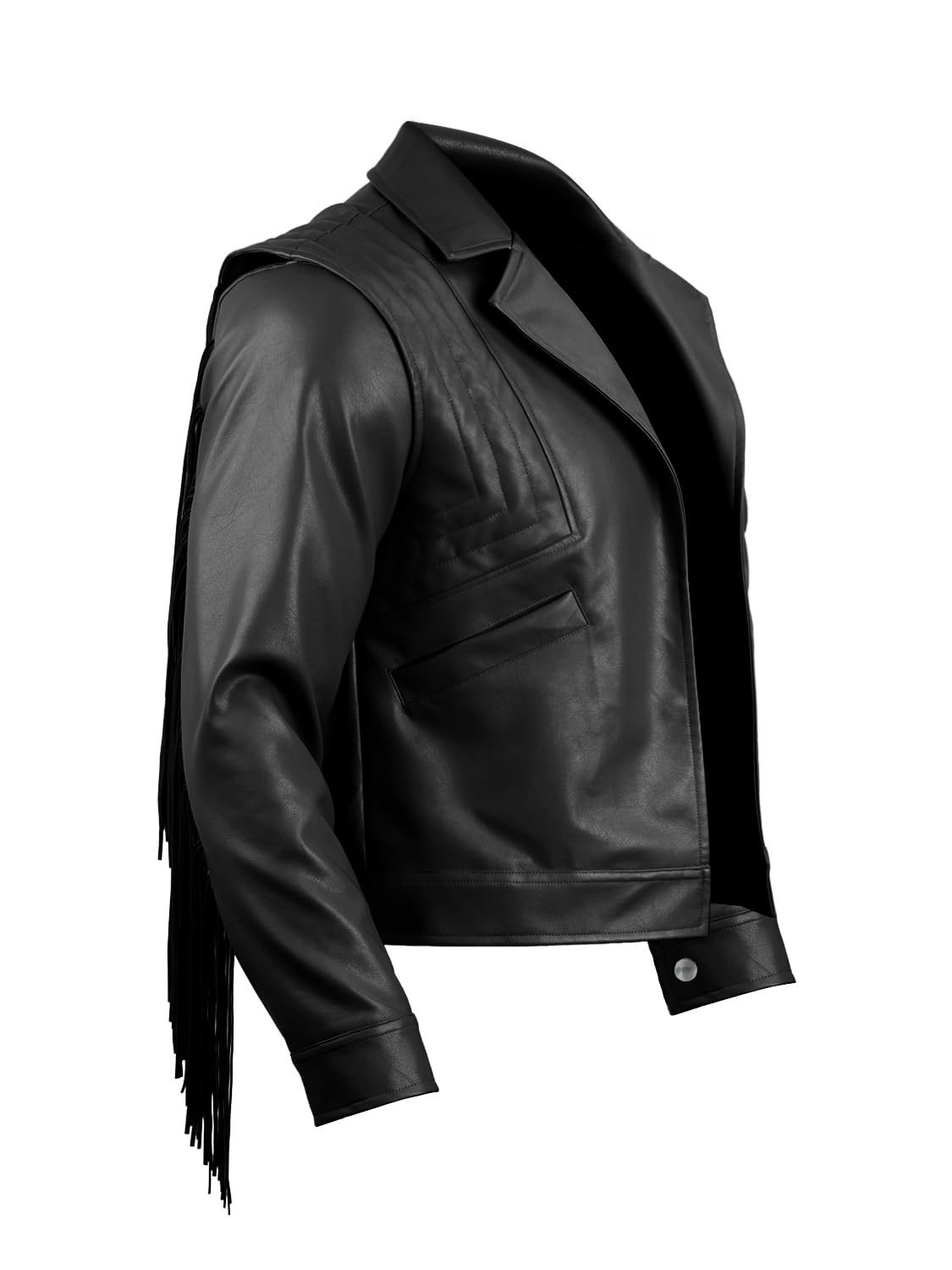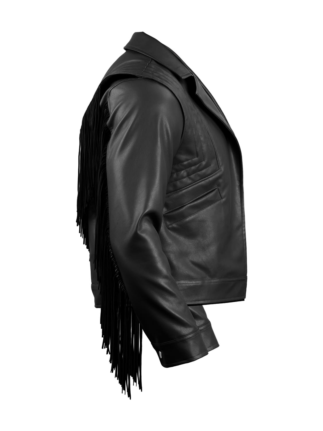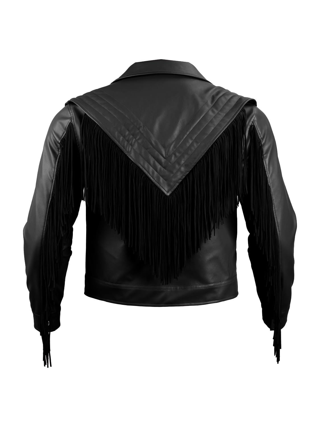 Distinctive Fringe Accents-Long tassels adorn the sleeves and back, adding dynamic movement and a unique flair reminiscent of classic biker aesthetics.