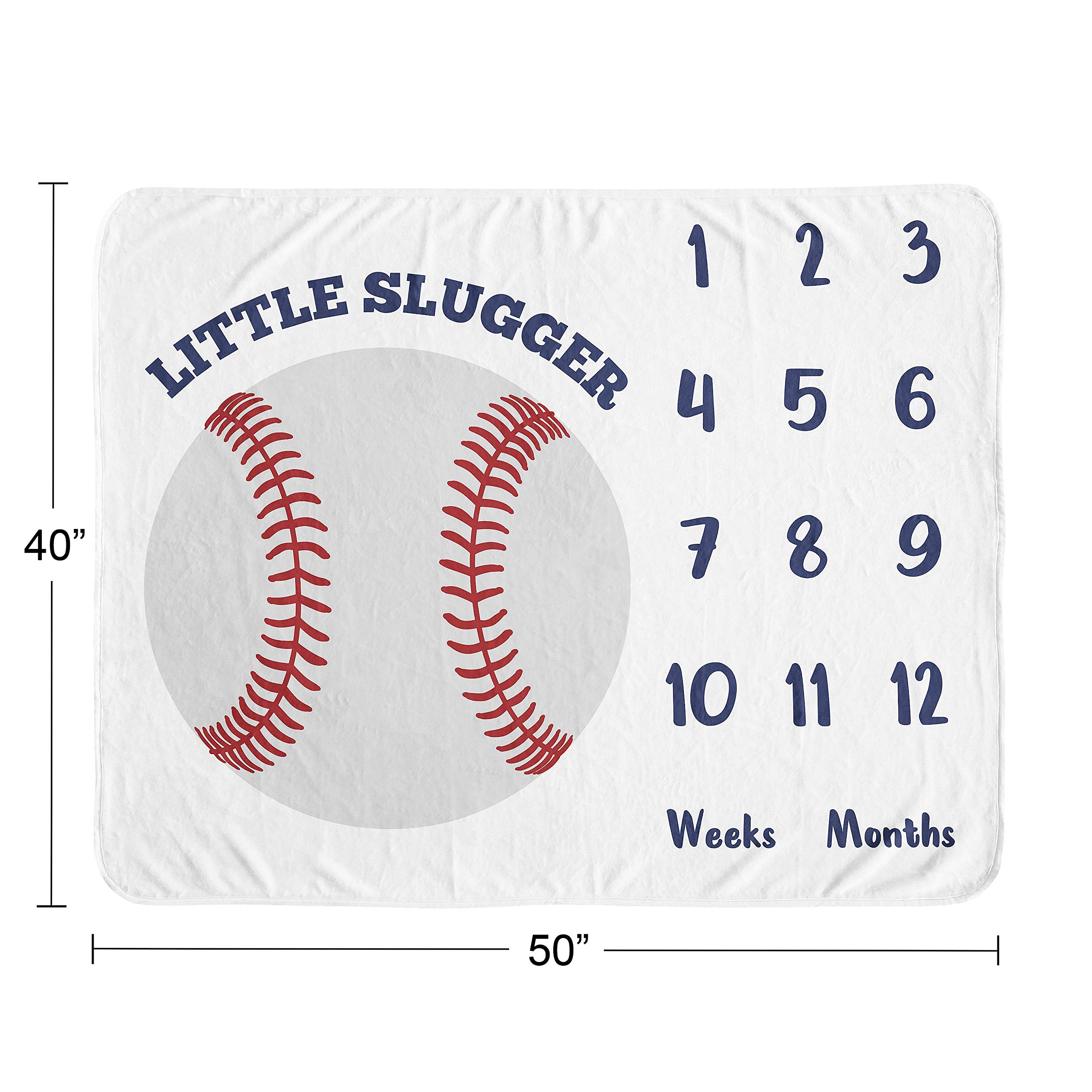 100% plush minky fleece featuring a red white and blue baseball with an inspirational "Little Slugger" quote