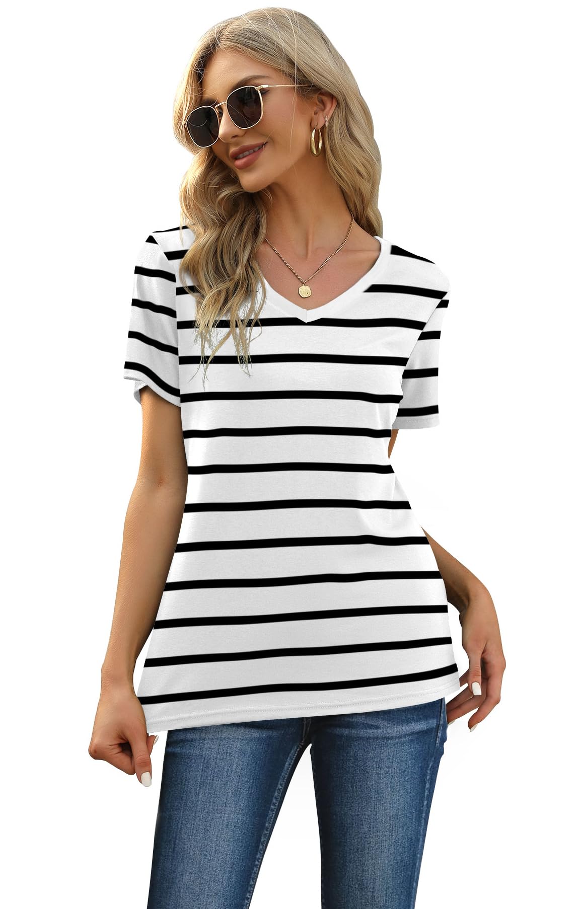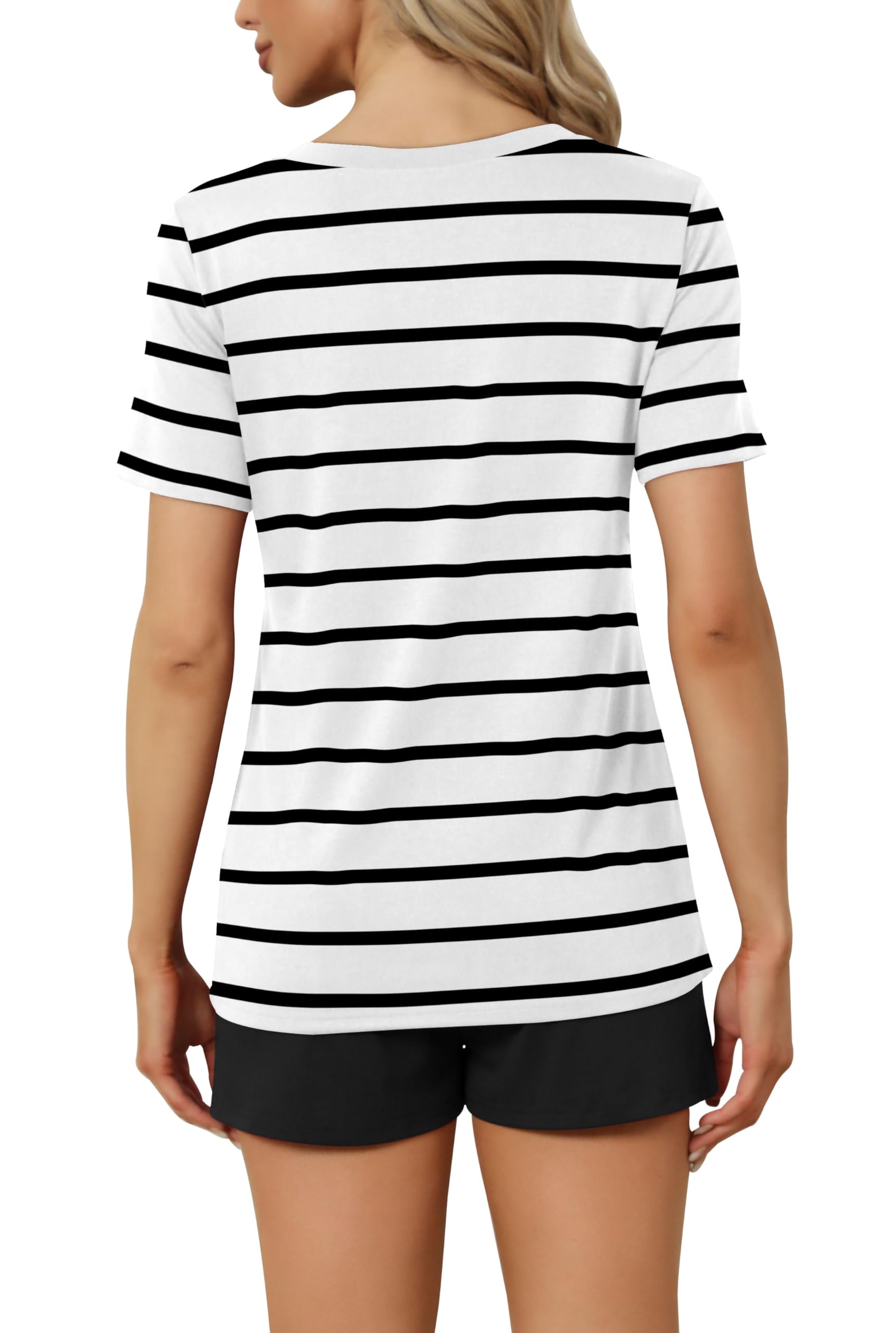 FEATURE --- The package including 2 x short sleeve t-shirts and 2 x shorts. The top has classic v neckline. The short has elastic drawstring and side pockets. The cute top is perfectly complemented by shorts. Casual and sexy in daily life.