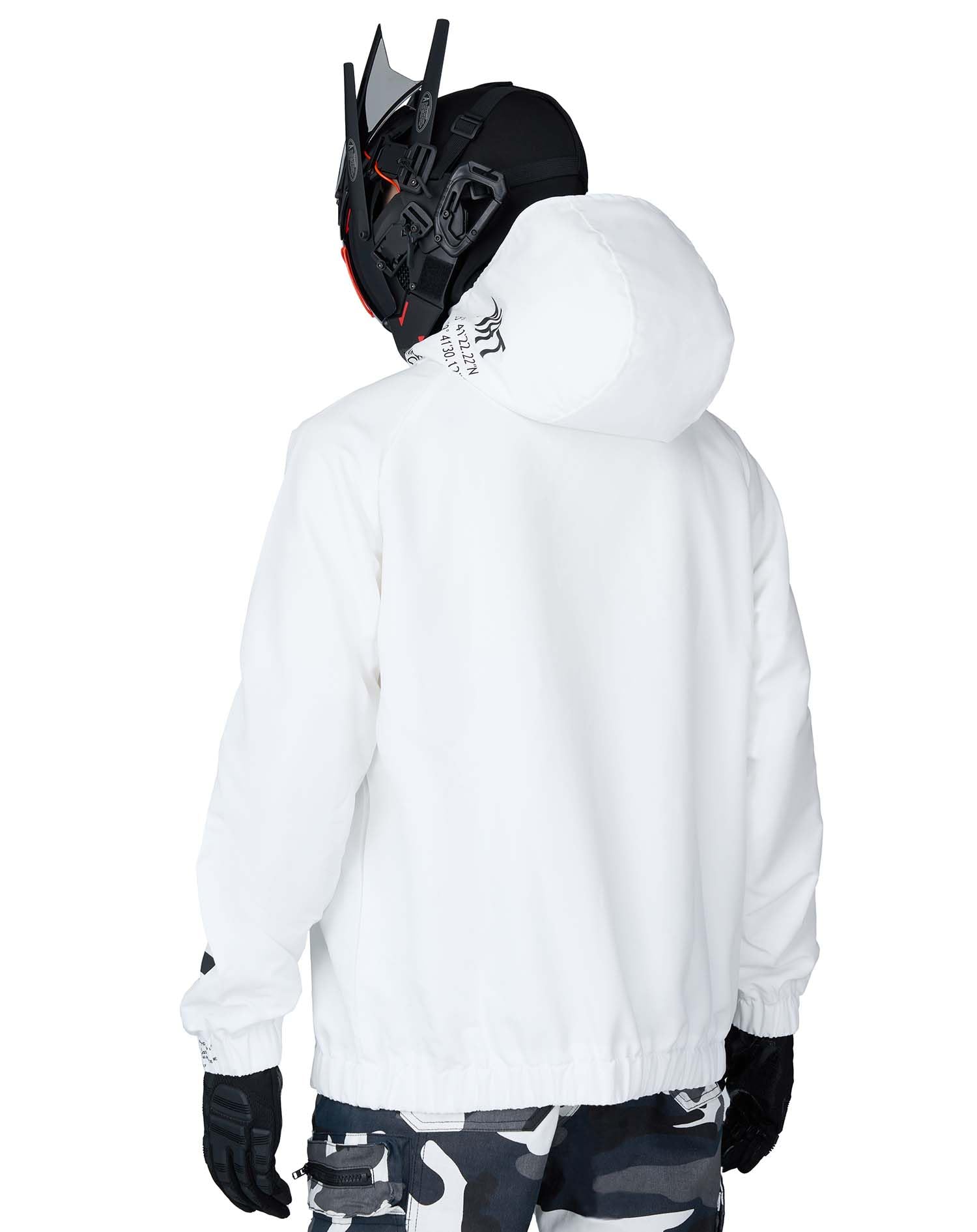 Description Techwear windbreaker with a relaxed and oversized silhouette. Made from durable heavy duty fabrication. Fitted with a high turtleneck hood to keep you warm in fall and winter. Finished with two slip pockets at waist. This jacket design is inspired by Japanese streetwear culture.