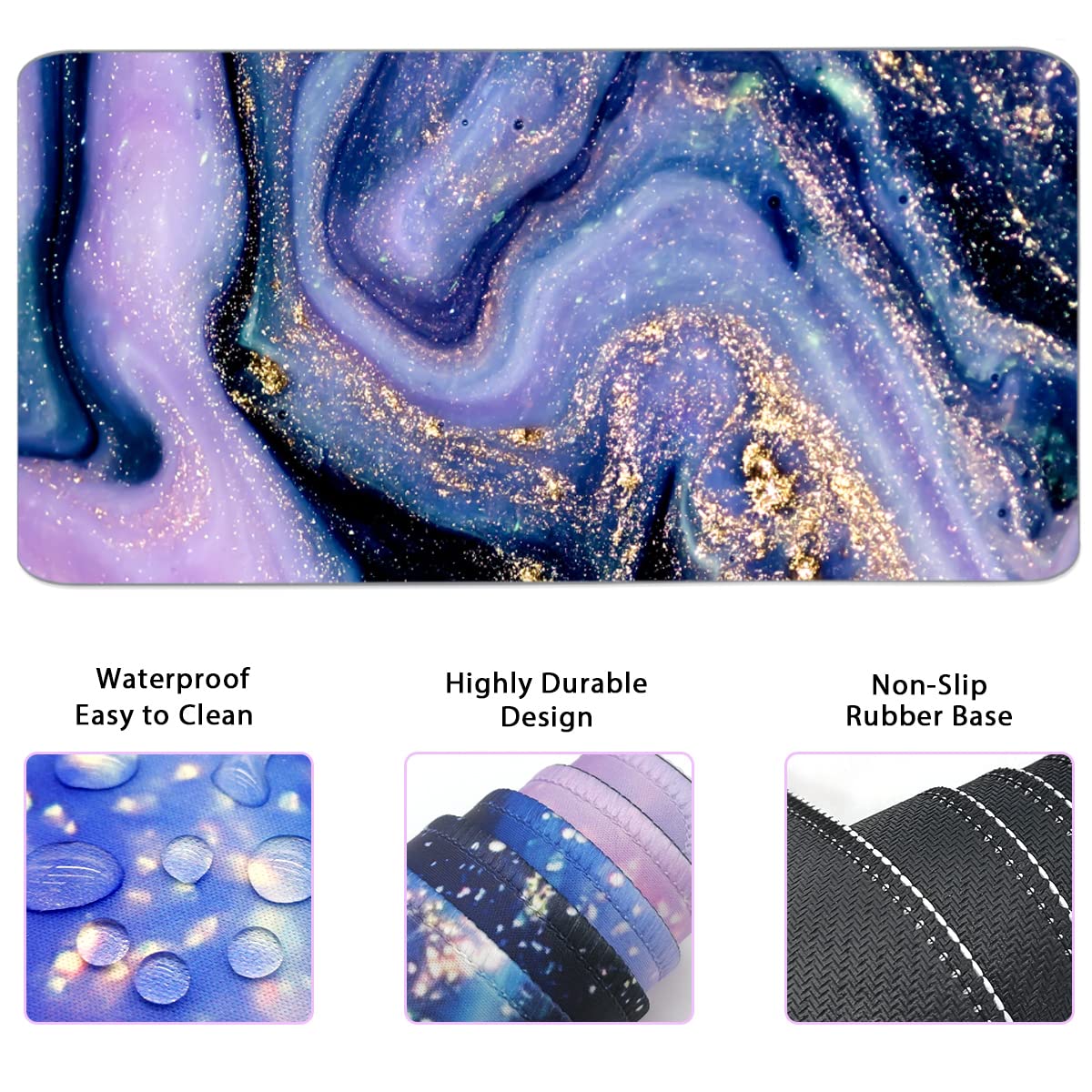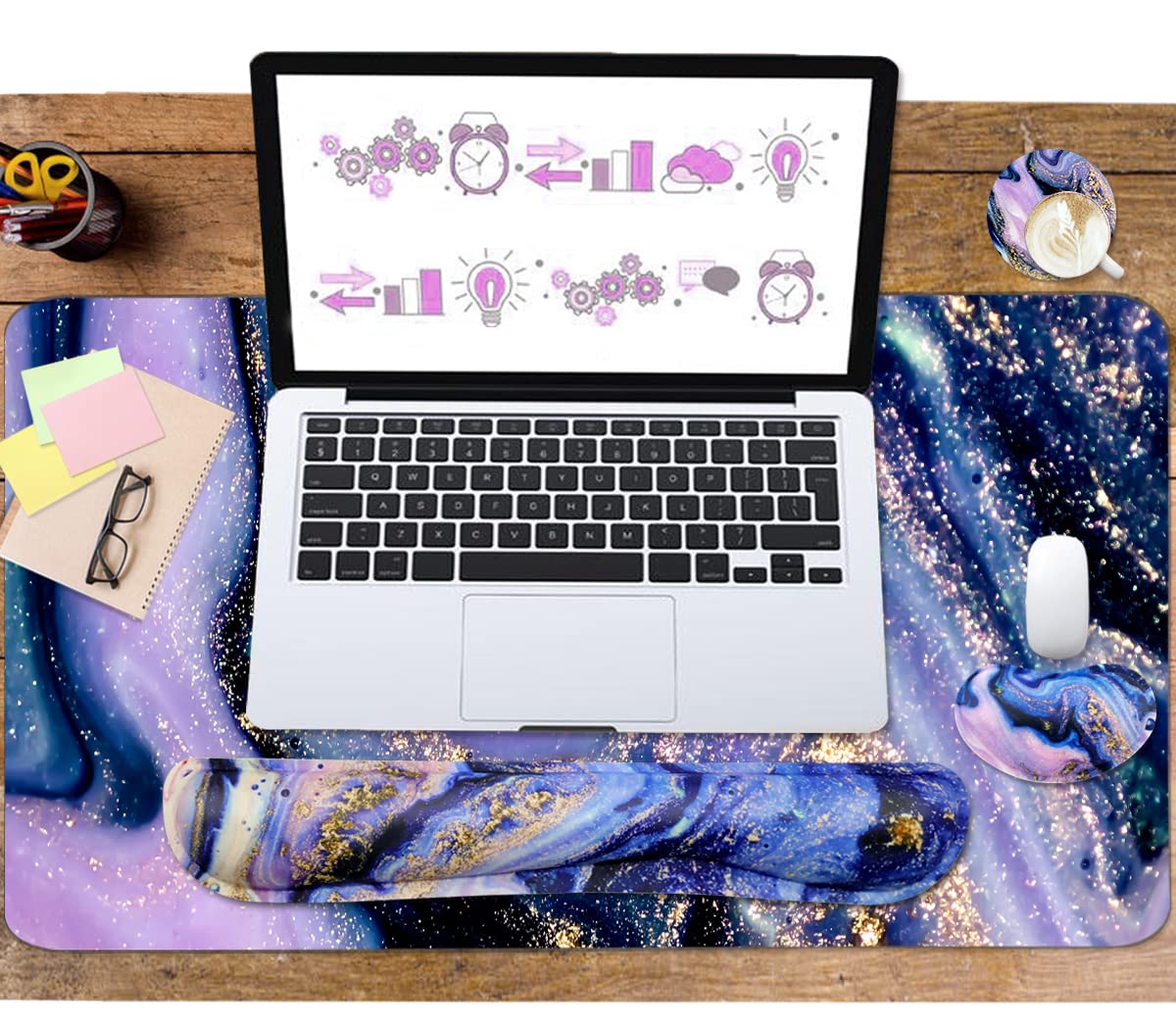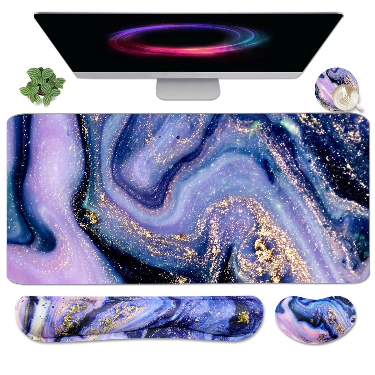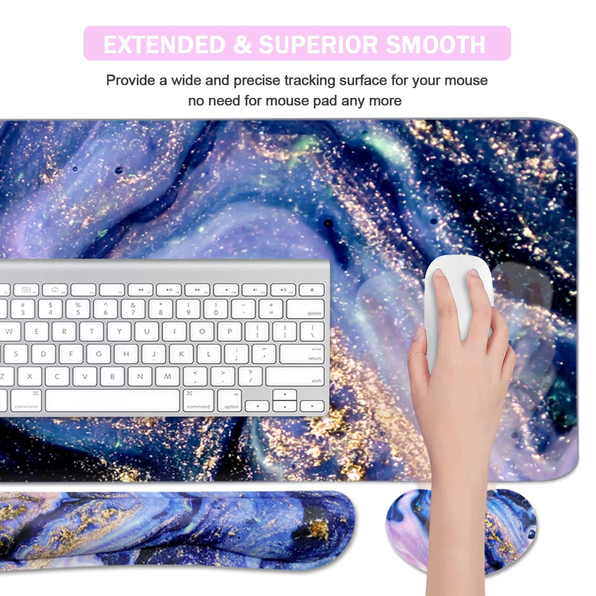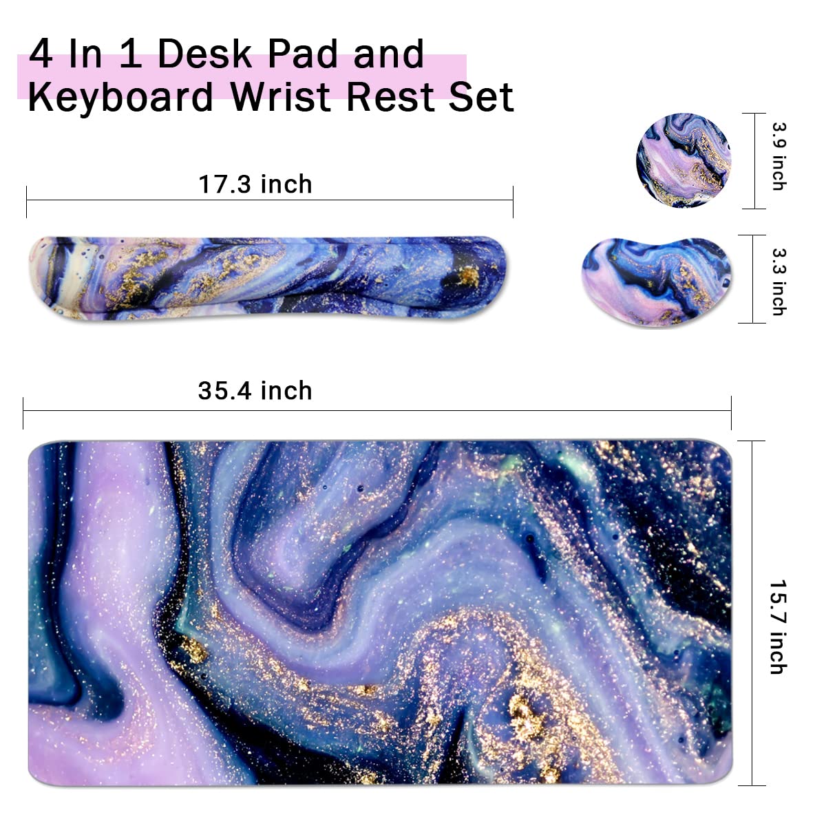 Keyboard Mouse Pad Set, Extended Mouse Pad+Keyboard Wrist Rest Support , Memory Foam Ergonomic Easy Typing Pain Relief, 3Pcs (35.4×15.7 in) Desk Pad Set for Home Office Study Game-Purple Gold Marble