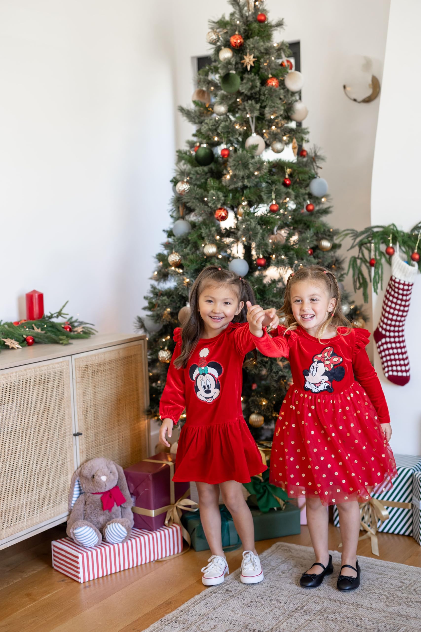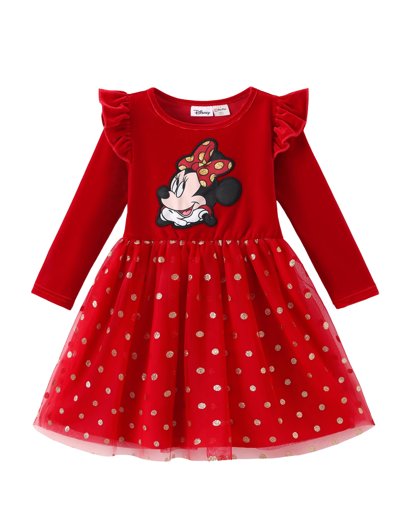 Disney Officially Licensed Toddler Christmas Dress: Celebrate the holidays in this officially licensed Disney Minnie Mouse dress, a festive must-have for toddlers. With its classic red color and sparkling gold polka dots, this Minnie Mouse toddler dress brings joyful style to Christmas, birthdays, and everyday fun. A perfect Minnie Mouse dress for girls, designed to charm both parents and kids