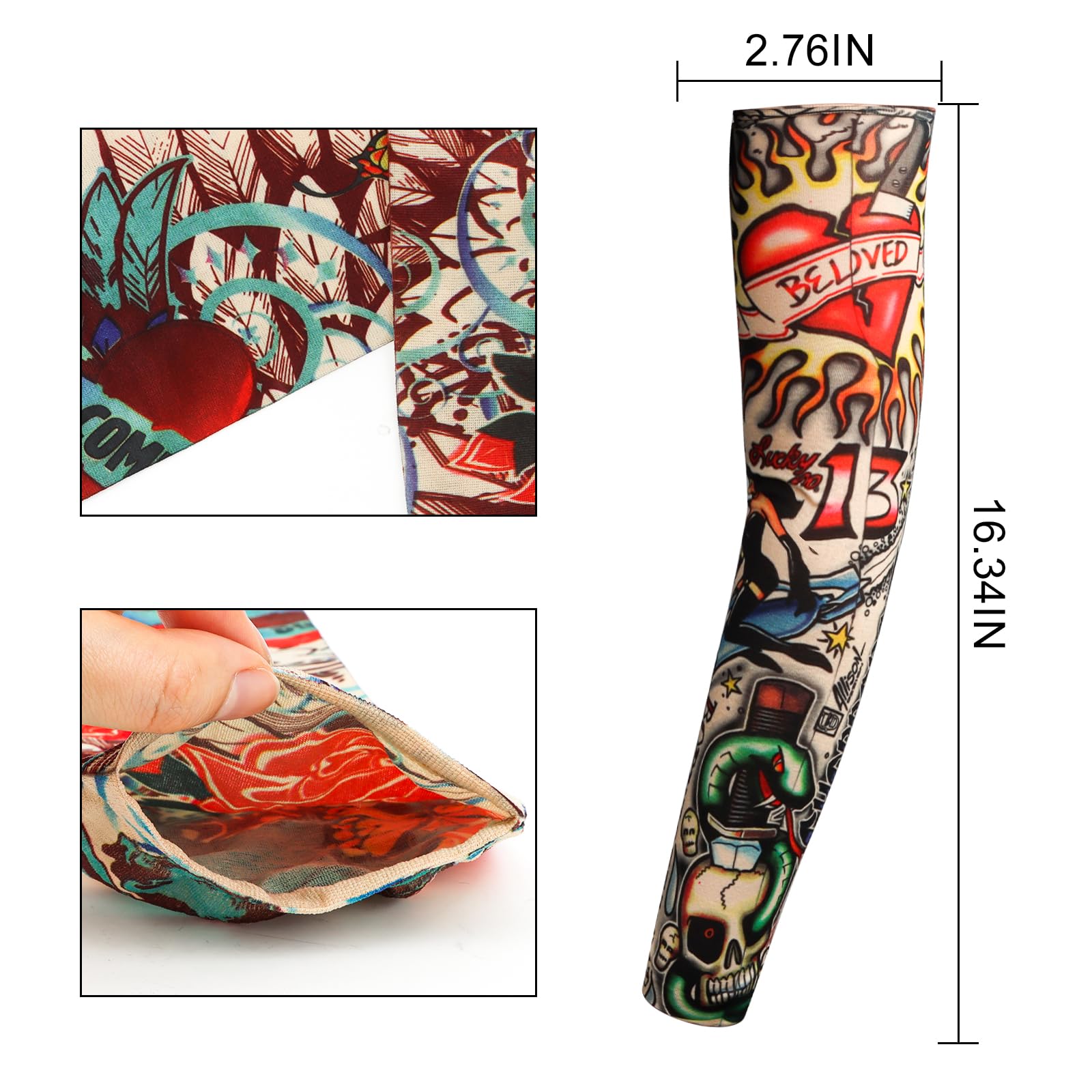 Looks Real and Seamless -- 92% nylon and 8% spandex,stretchable fabric material,These arm tattoo sleeves is easy slip on and off,you can feel comfortable and soft whenever you wear it. Reasonable price with great quality.