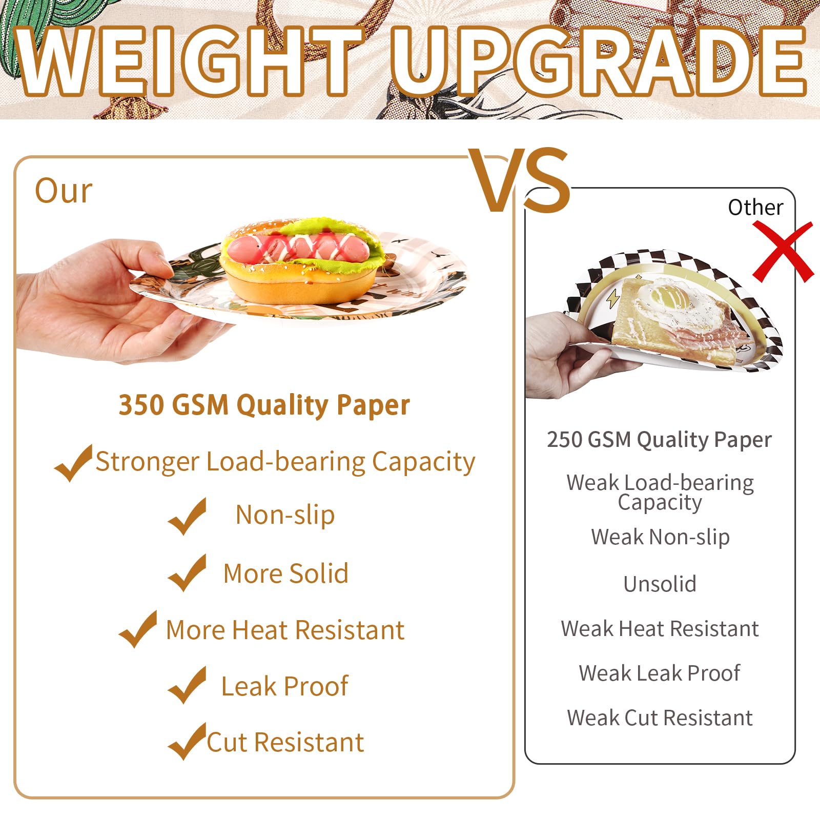 Premium Material:Our western cowboy baby shower plates are made of high quality thick paper, 350g weight is more sturdy and durable. The napkins are 2-ply thick, soft, absorbent and durable. Forks are made of high quality plastic, not easy to break. Patterns and colors are beautifully printed and not easy to fade. All made from food grade materials ensure you enjoy the party smoothly and hassle-free! (Tip: Please do not microwave the plates.)