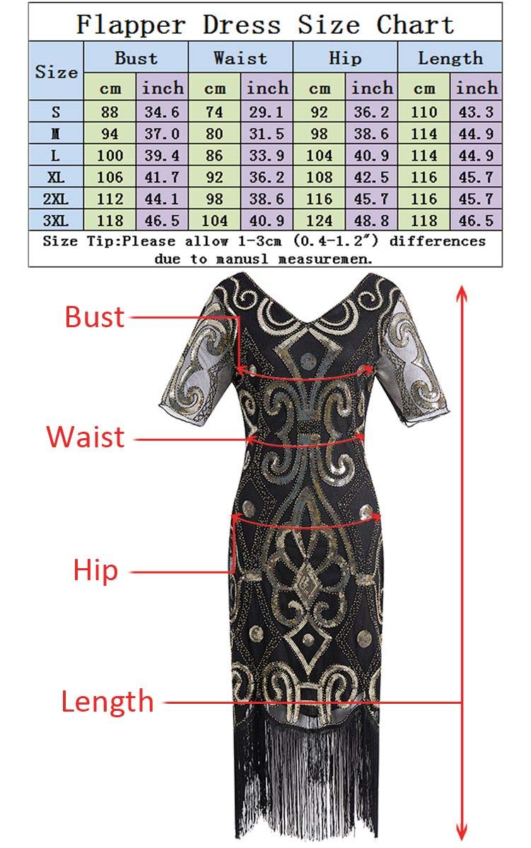Package include: 1 x 1920S Sequin Tassel Flapper Dress , 2 x Pearl Necklace ; 1 x Long Satin Gloves; 1 x Black Cigarette Holder ; 1 x Headband ; 2 x Earrings ; 1 x Pearl Bracelet ; 1 X Pearl Brooch ; 1 x Pearl Open Ring.