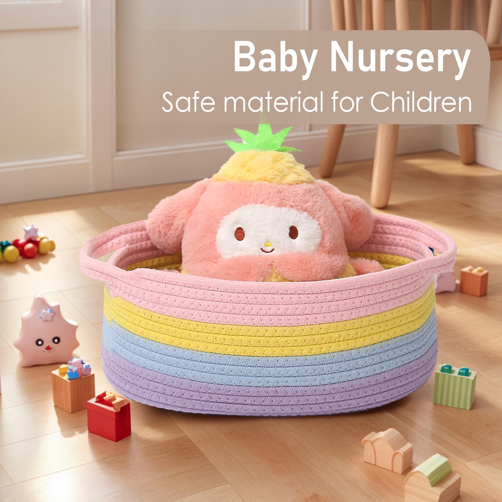 Soft and Sturdy Handles---The ergonomic soft handles provide a comfortable grip, ideal for moving around the house. Great for use as a toy bin, diaper caddy, or pet toy basket, offering both comfort and convenience in daily use.