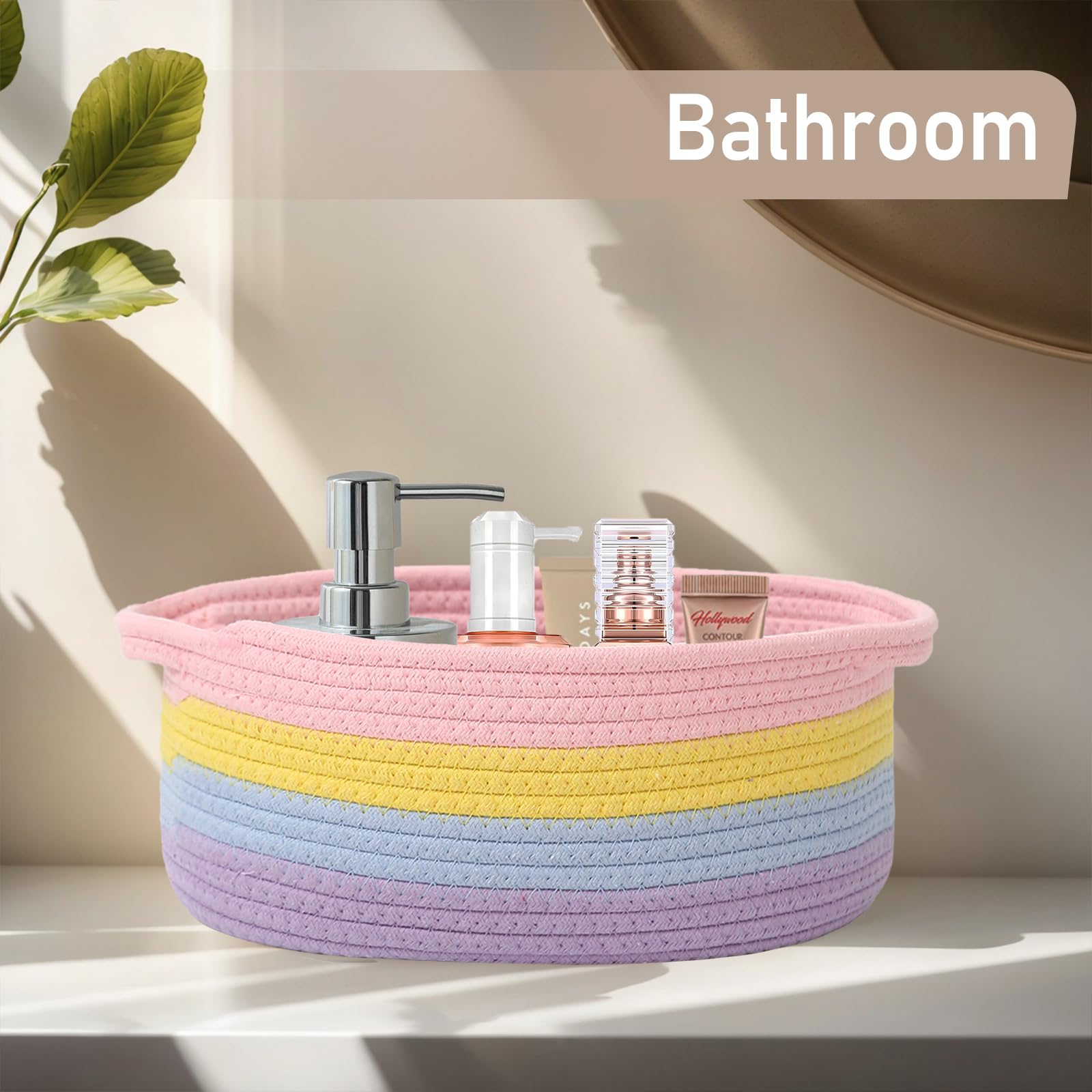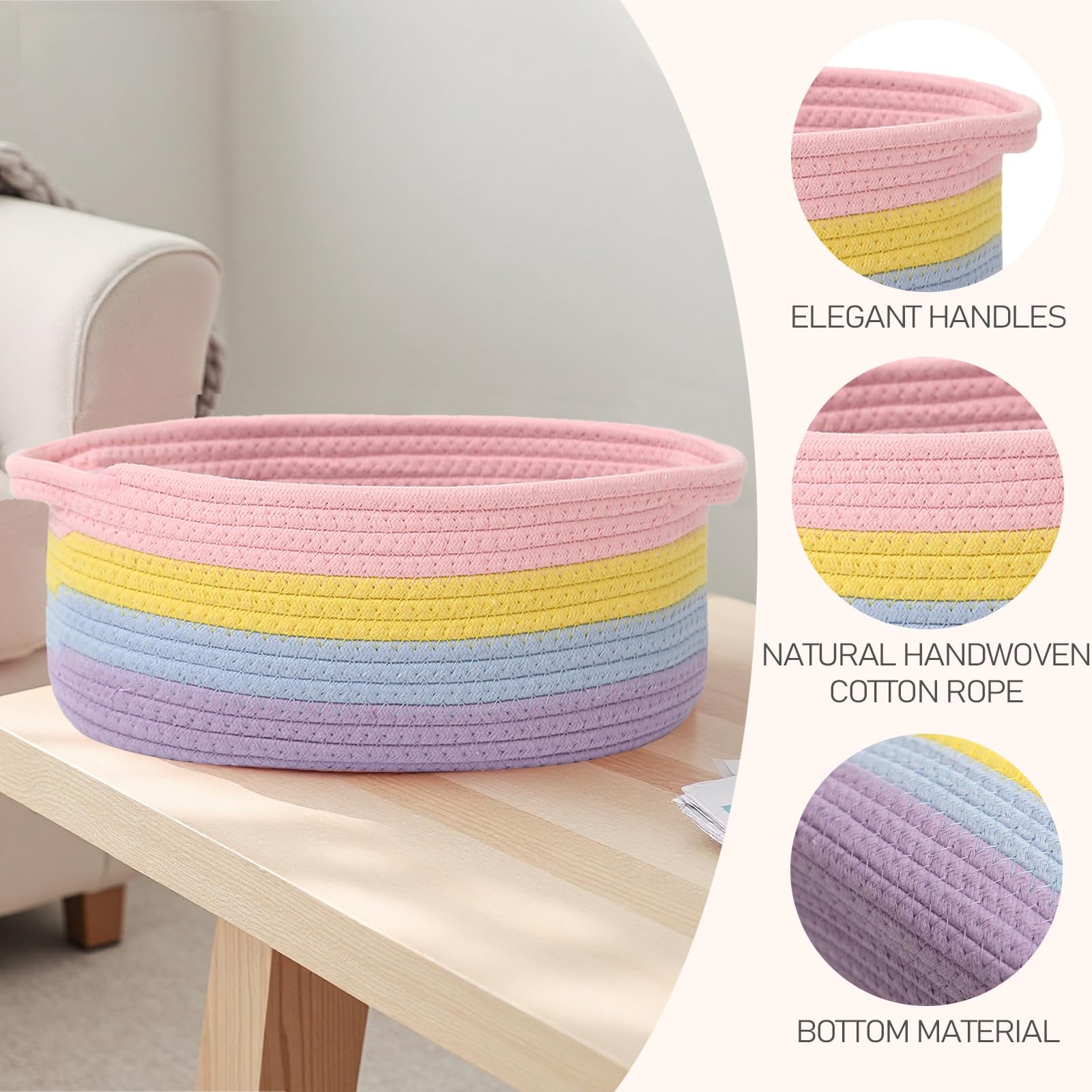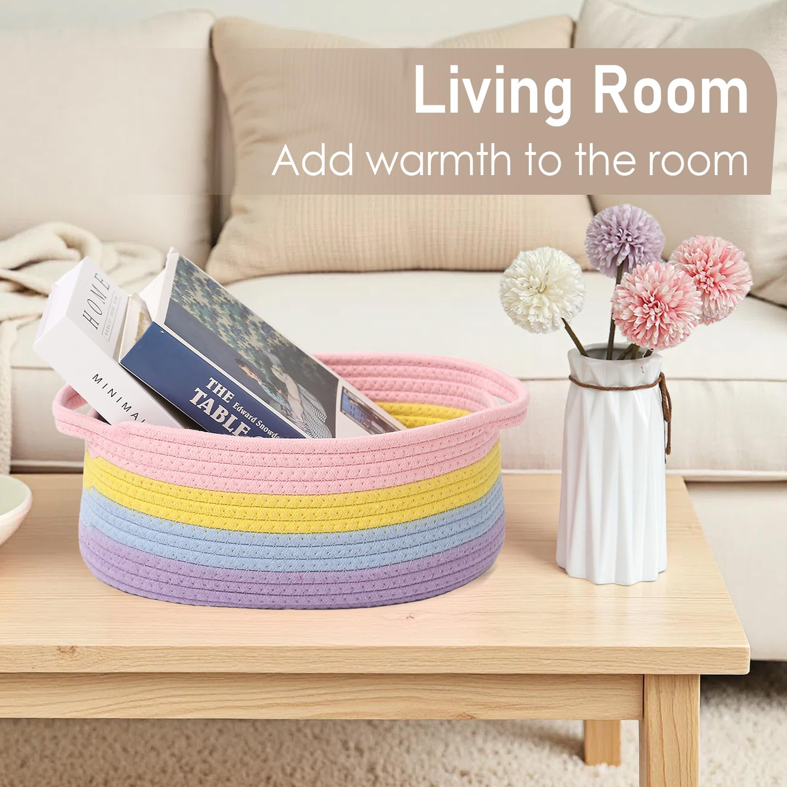 Handmade Woven Basket---Made from natural materials, this woven baskets for storage option is safe for kids and pets. Crafted by skilled artisans, each cotton rope basket is unique in texture and quality.