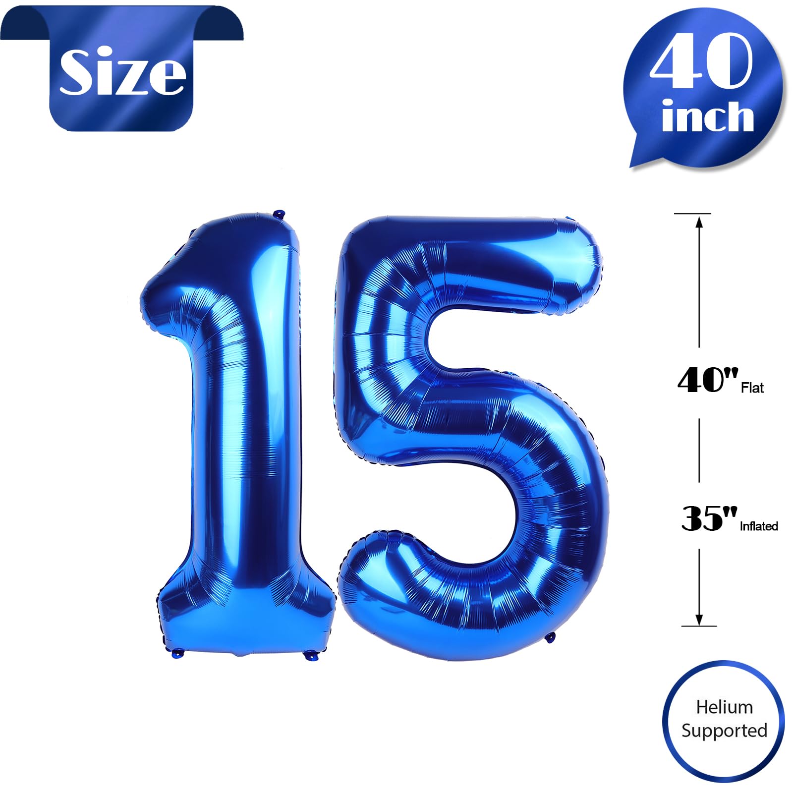 【Helium or Natural Air Both Work Well for this Balloon】This 15 balloon is the ultimate party accessory for 15 years old birthday decorations for boy and man! You can inflate the 15 balloon number with helium for a floating effect or blow it up with natural air to hang it up as a decoration. Either way, this sturdy blue number balloon won't disappoint. It's perfect for long-lasting celebrations that will leave a lasting impression on your guests.