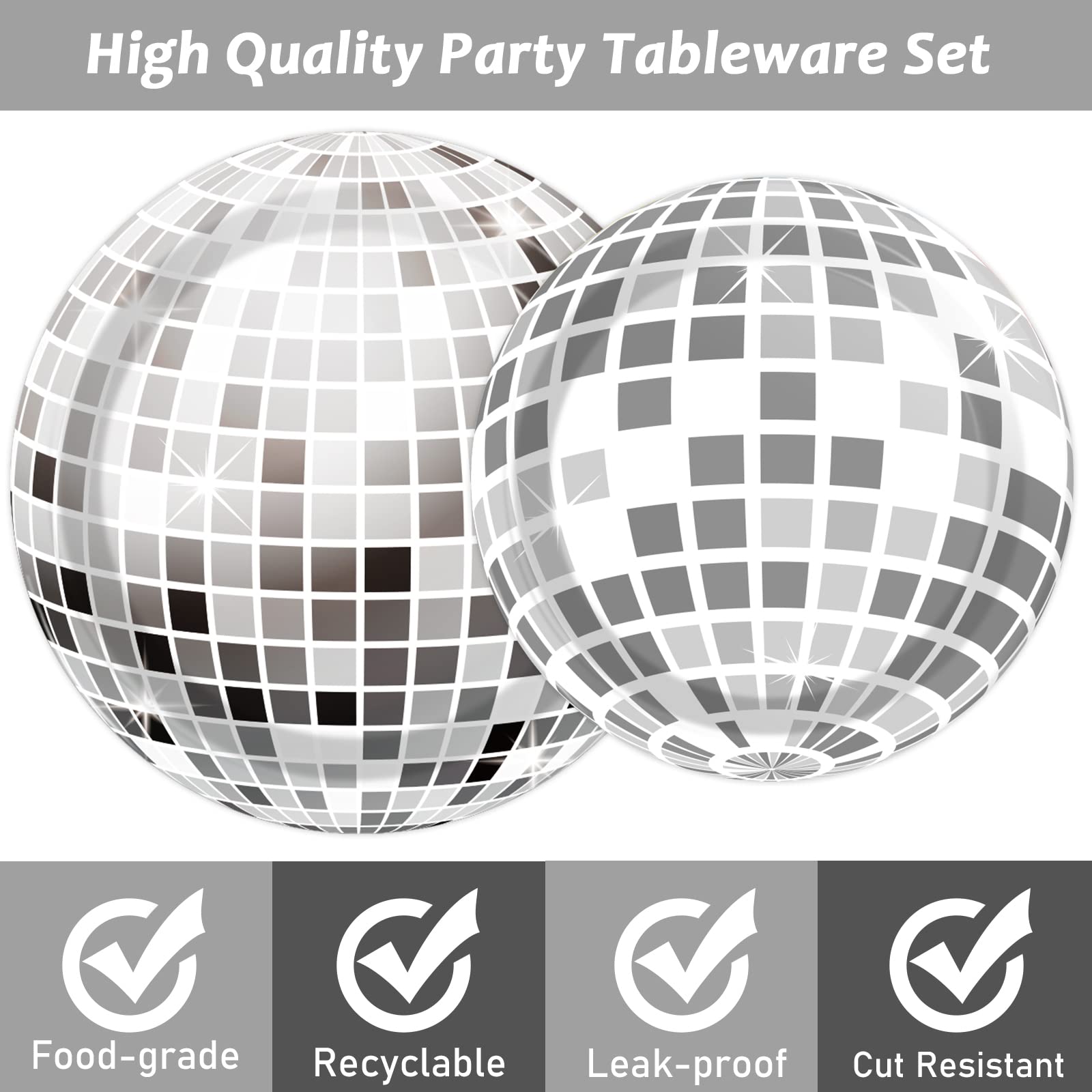 Easy to clean: You don't need to worry about cleaning. The 70s theme party decorations are disposable, you can throw silver disco ball party plates directly after the party , just enjoy your time with your friends.