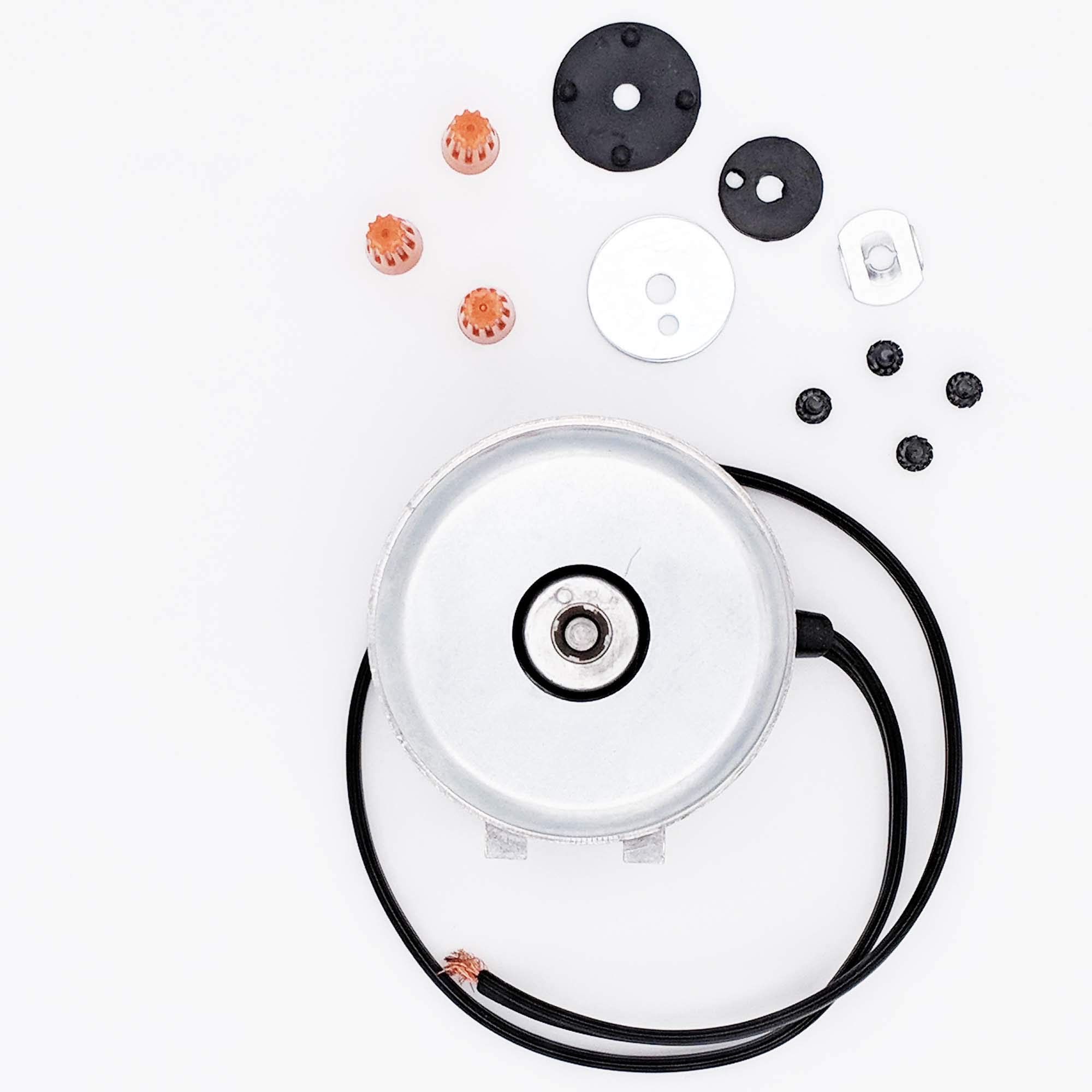 120V | 50/60Hz | 0.28A | 1550 RPM | Rotation: Clockwise | Shaft diameter: 1/4 Inch threaded | Threaded shaft length: 1/2 Inch | The condenser fan motor draws air through the condenser coils and over the compressor to cool the refrigerator