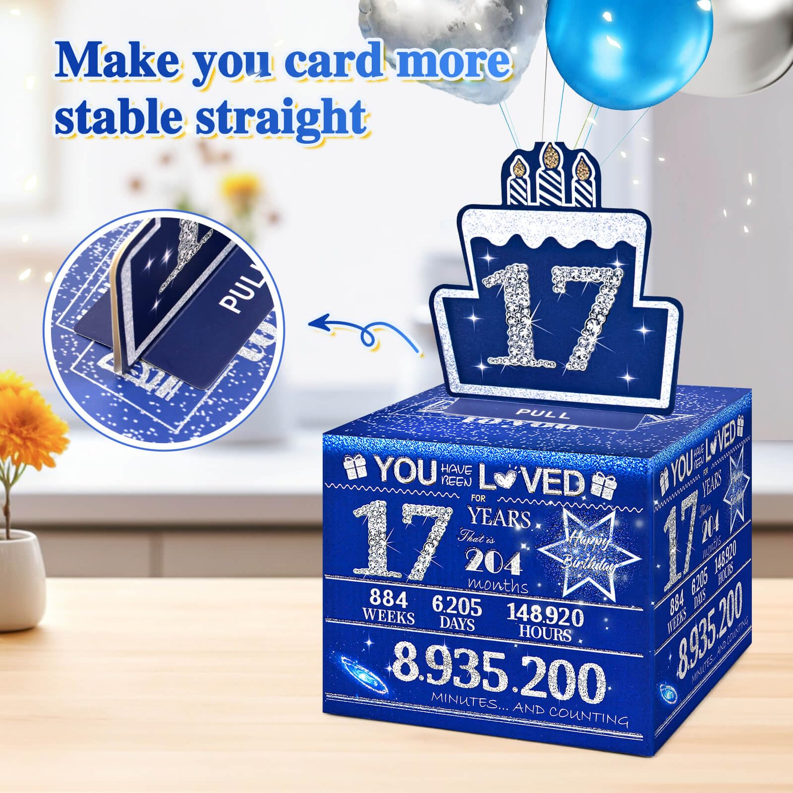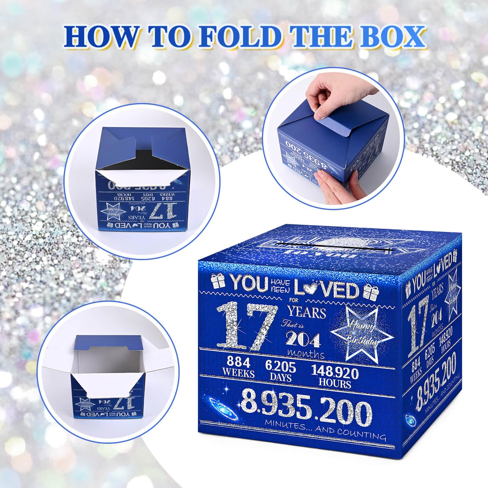 17 Year Old Boy Birthday Decorations : This items measures 4.12 x 5.12 x 5.12 inches and is made of thick cardboard, making it sturdy and durable. It also includes one birthday cake card (with adhesive dots in the middle) that can stand top on the birthday money box. The product has upgraded the quantity of plastic bags, similar in size to a dollar bill, to 100, satisfying your DIY needs.