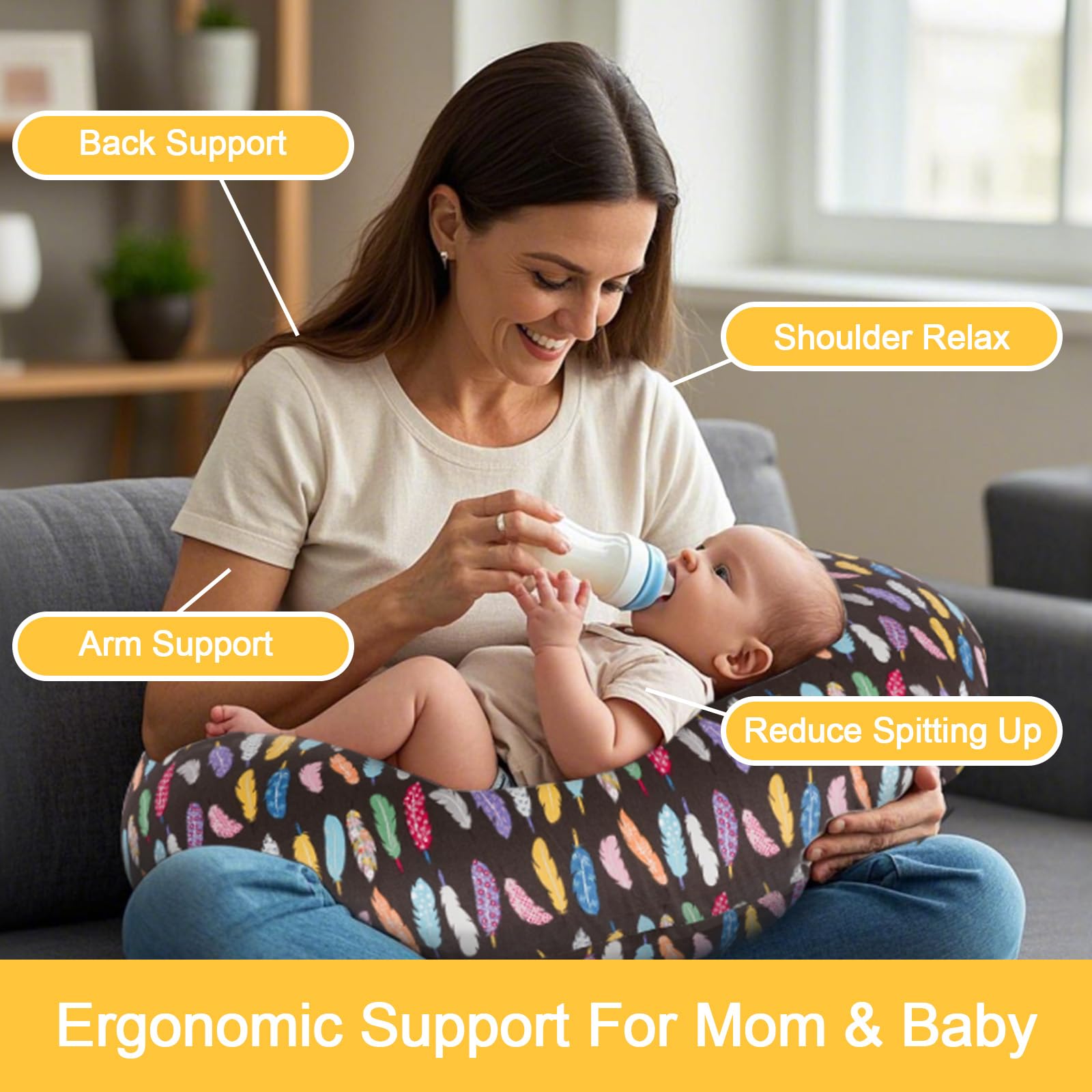 Designed & Recommended by Midwives- This C-Shape nursing pillow provides breathability and a gentle surface for your baby's sensitive skin. The baby feeding pillow is stuffed with 3D polyester fiber to ensure adequate air circulation and guarantee optimal elasticity and softness. Nursing pillow cover is detachable and machine-washable. The pillow core is adjustable for personalized height and comfort