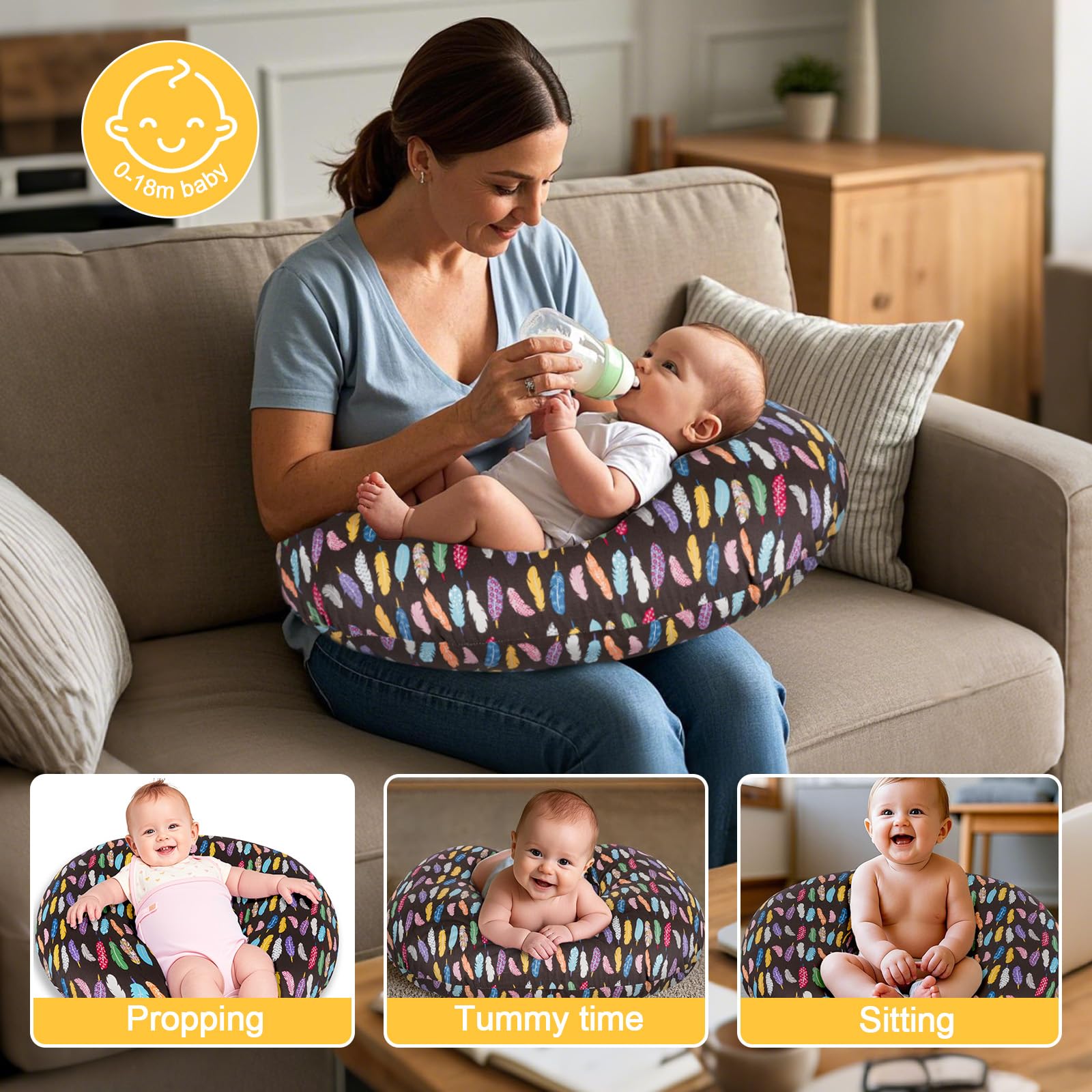 Nursery Must-have for Baby-Care - Baby nursing pillow and positioner can provide proper support and stability for your baby boy and girl at feeding (0+ months), propping (3+ months), tummy time (6+ months), and sitting (9+ months). Several nursing pillows in the baby’s crawl area keep them safe from crawling to standing