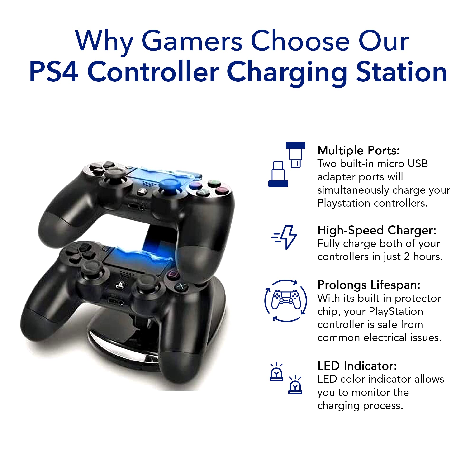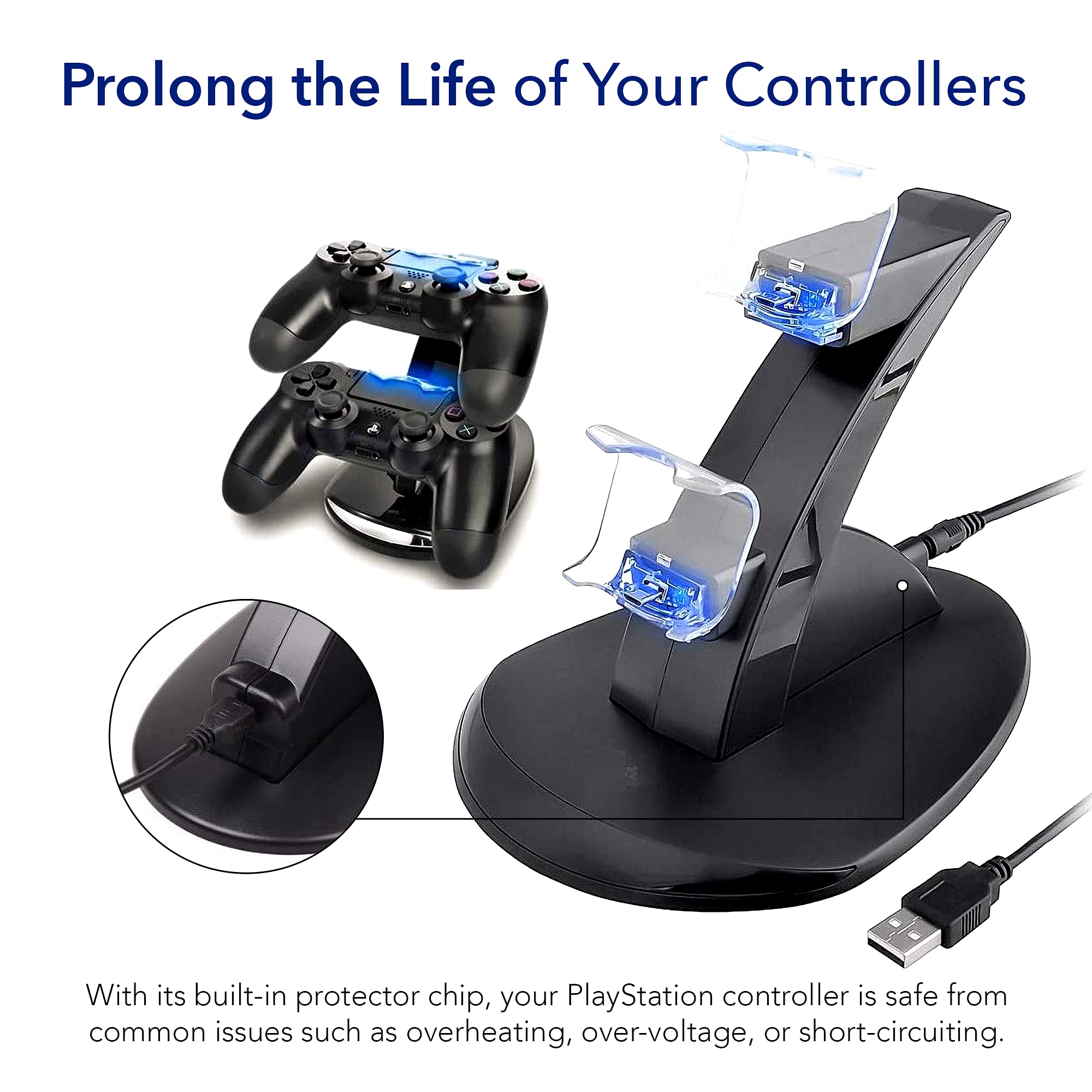 πππ π πππ ππππππ ππππππππ: Protect your PS4 controllers from potential damage with the our ps4 pro controller charger built-in protector chip. This advanced feature prevents overheating, power surges, and short circuits, ensuring your controllers are always safe during charging. Extend the lifespan of your controllers with reliable charging station.