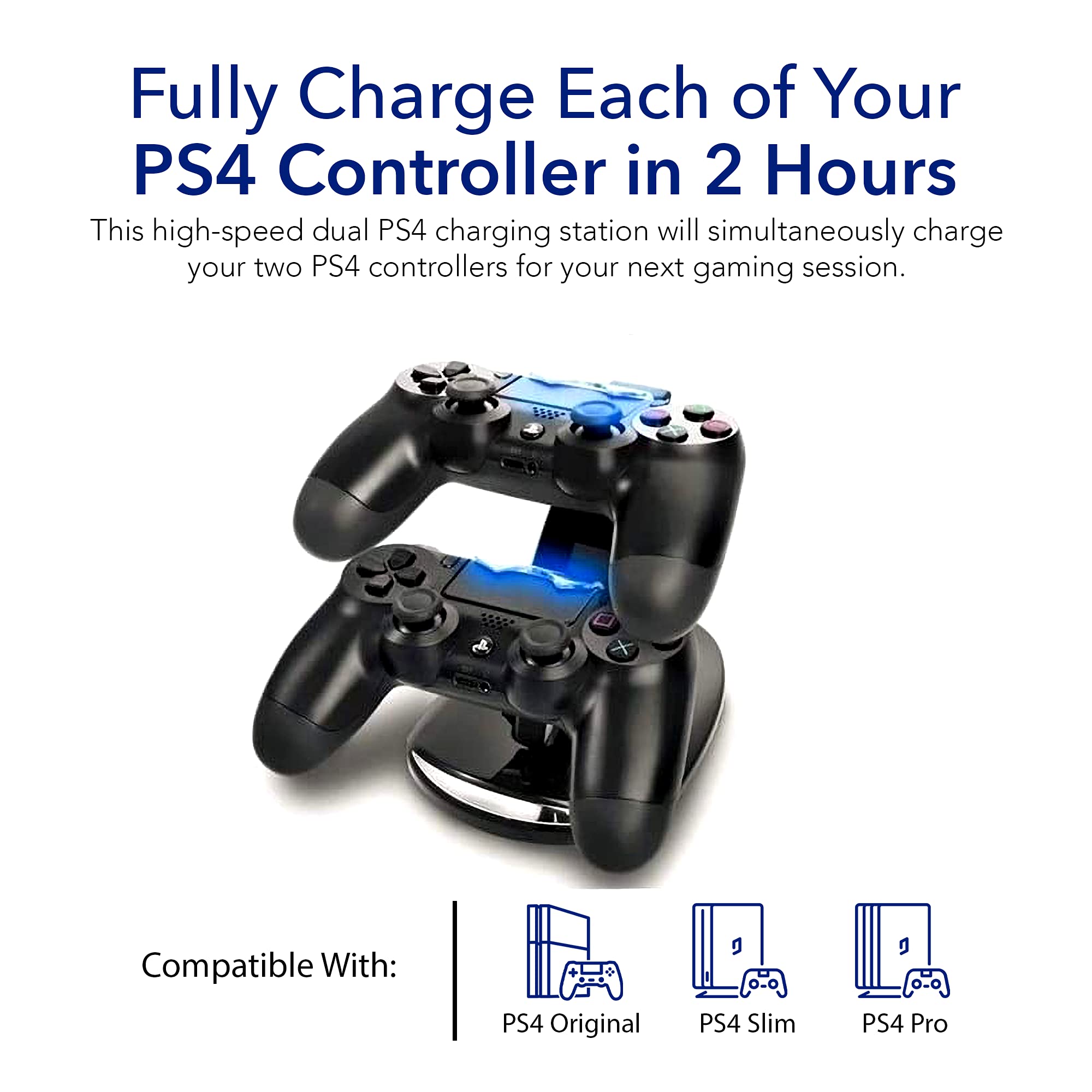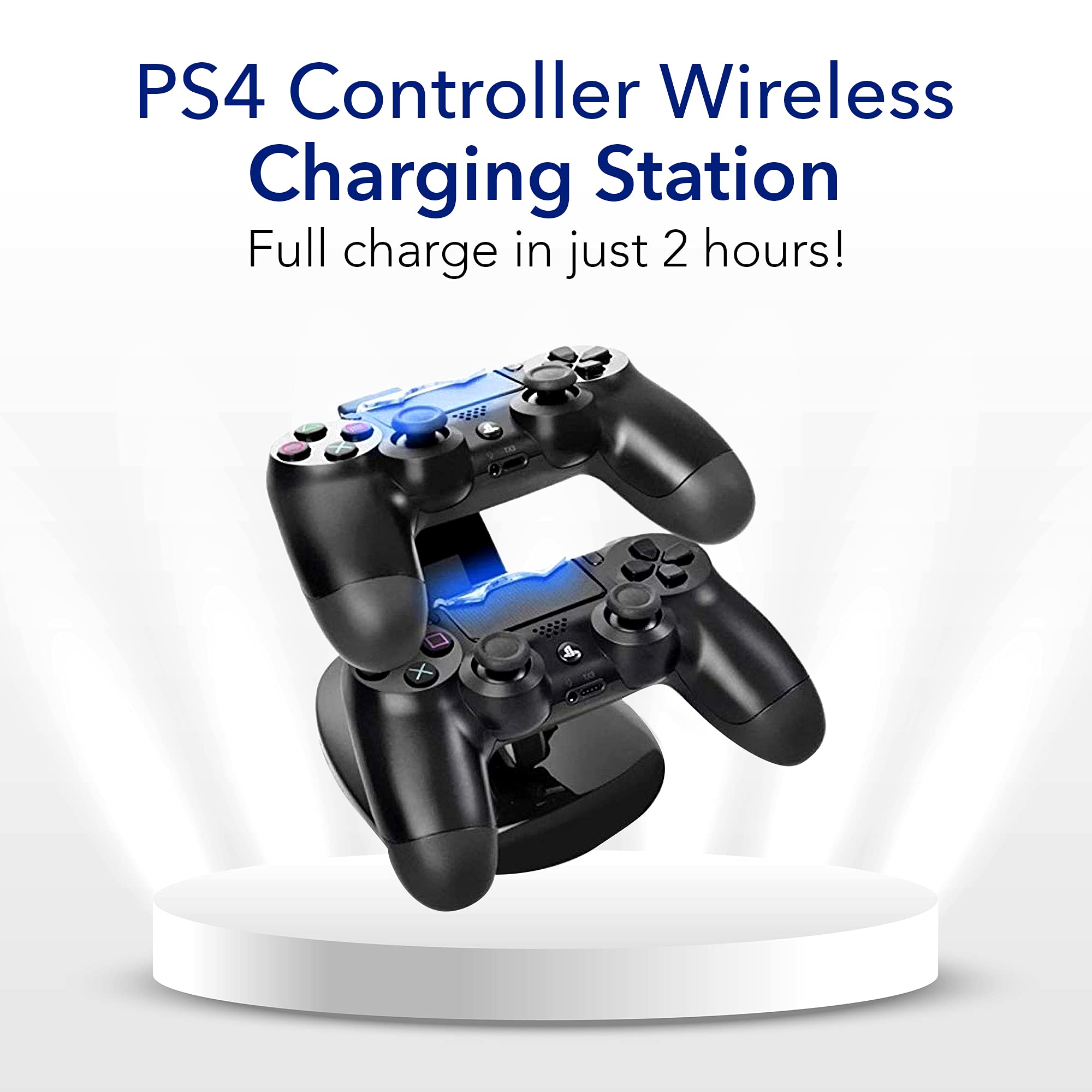 ππππ ππππππππ πππππ: The PS4 controller charger offers you to power up two PS4 controllers at the same time with its dual USB ports. This feature ensures you spend less time waiting and more time gaming. The wireless charging station provides a seamless and uninterrupted gaming experience makes it an ideal gaming accessories.