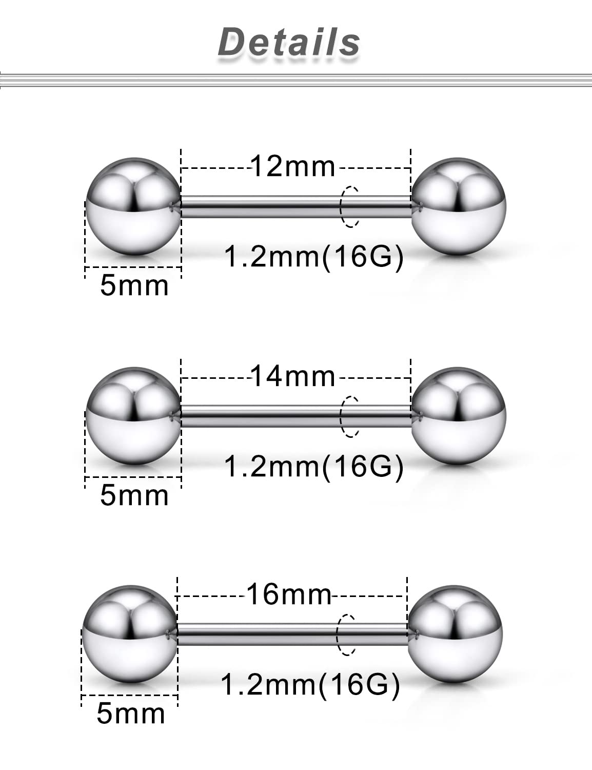 Description Ocptiy 14G 16G Titanium Tongue Rings Nipple Piercing Jewelry G23 Hypaollergenic Externally Threaded Nipple Bars Tongue Barbells Body Piercings Jewelry for Women Men 12mm 14mm 16mm 19mm Bars Length