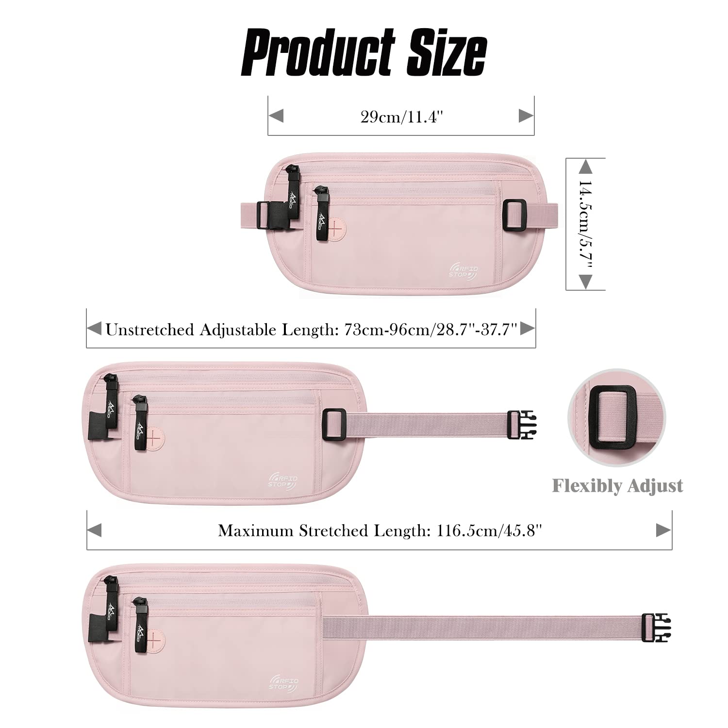 【ULTIMATE COMFORT】-Designed form skin-friendly material, the travel money belt is breathable to keep dry. Super lightweight that adds minimum bulk and weight, it is comfortable to wear. The elastic waist strap can be adjusted to perfectly fit waist circumference 28" to 50" and would not slide up and down, fixing the height you want perfectly.