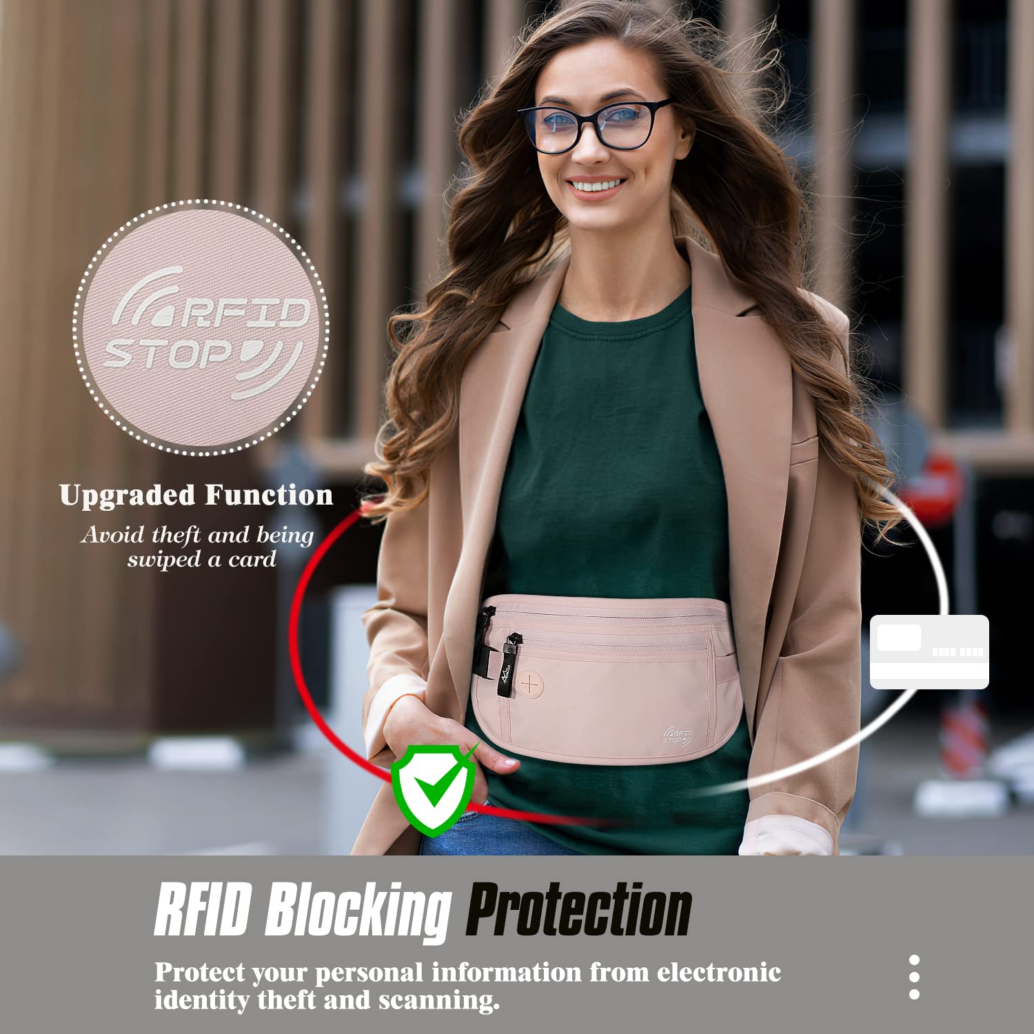 Description A Perfect Travel Companion to Keep Your Belongings Ultra-Safe and Enjoy Care-free Vacation! Whether you are travelling, out for a holiday, or on a business trip, this multi pockets money belt --- has roomy space to keep your passport, credit cards, smart phones, money, keys and other valuables in sight and within easy reach. and can be hidden underneath the clothes, provides full protection for your valuables upon travel or outdoor activities. Fit nicely on both men and women at almost any sizes! We use the most durable materials to make your experience as joyful as possible! The best ever travel accessory is now available, seize the moment, Add to Cart to keep your valuables safe on the go and travel with fun! CONSTRUCTION: Item Weight: 3.2 oz Waist Size: 16 - 37.5 in Material: 210D rip-stop nylon Pockets: 2 zipper pockets 2 mesh compartments 1 hidden pocket 1 earphone opening