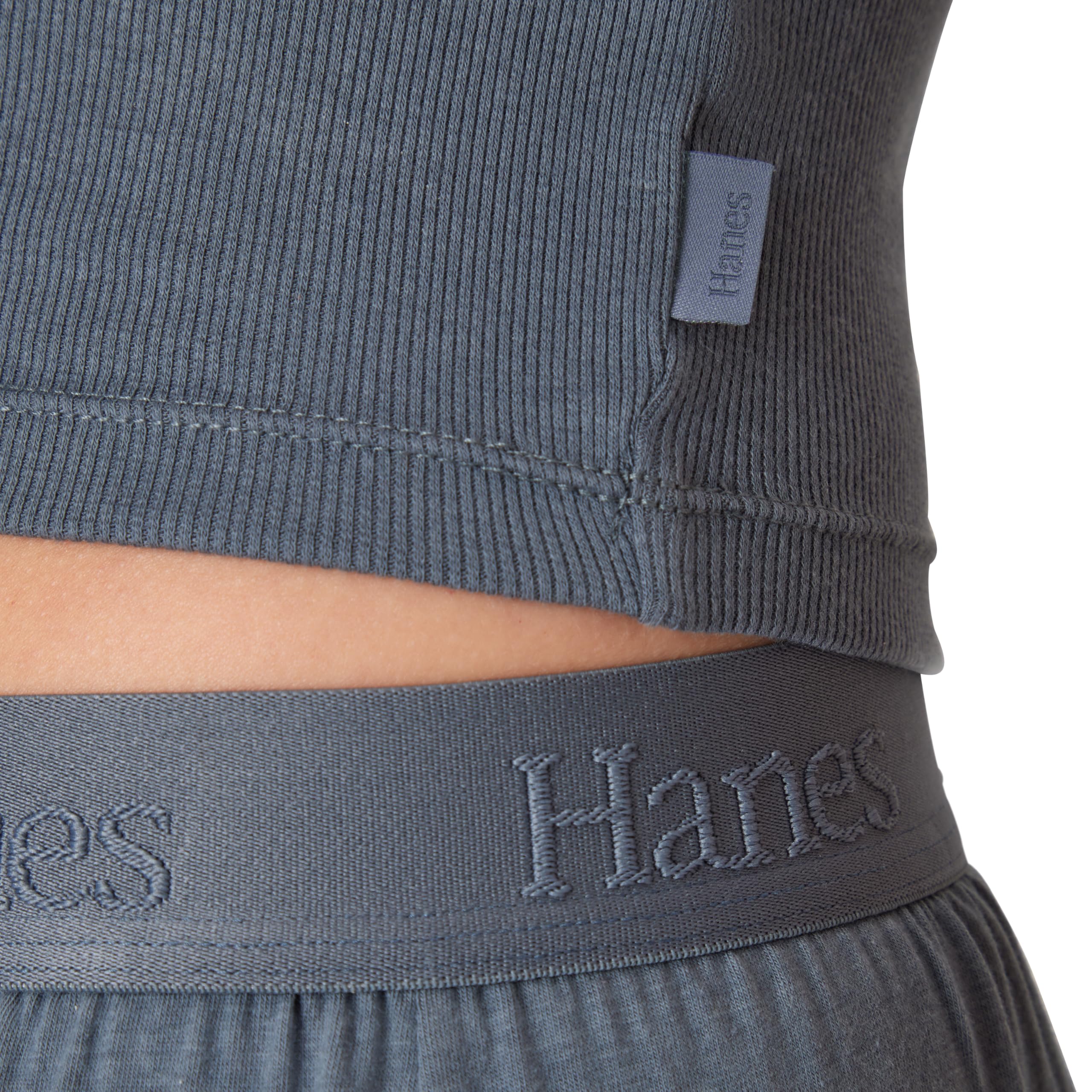 IT'S ALL IN THE DETAILS - Loungewear featuring a tonal Hanes soft-stretch elastic waistband and mid-rise, straight-leg fit allows for easy movement.