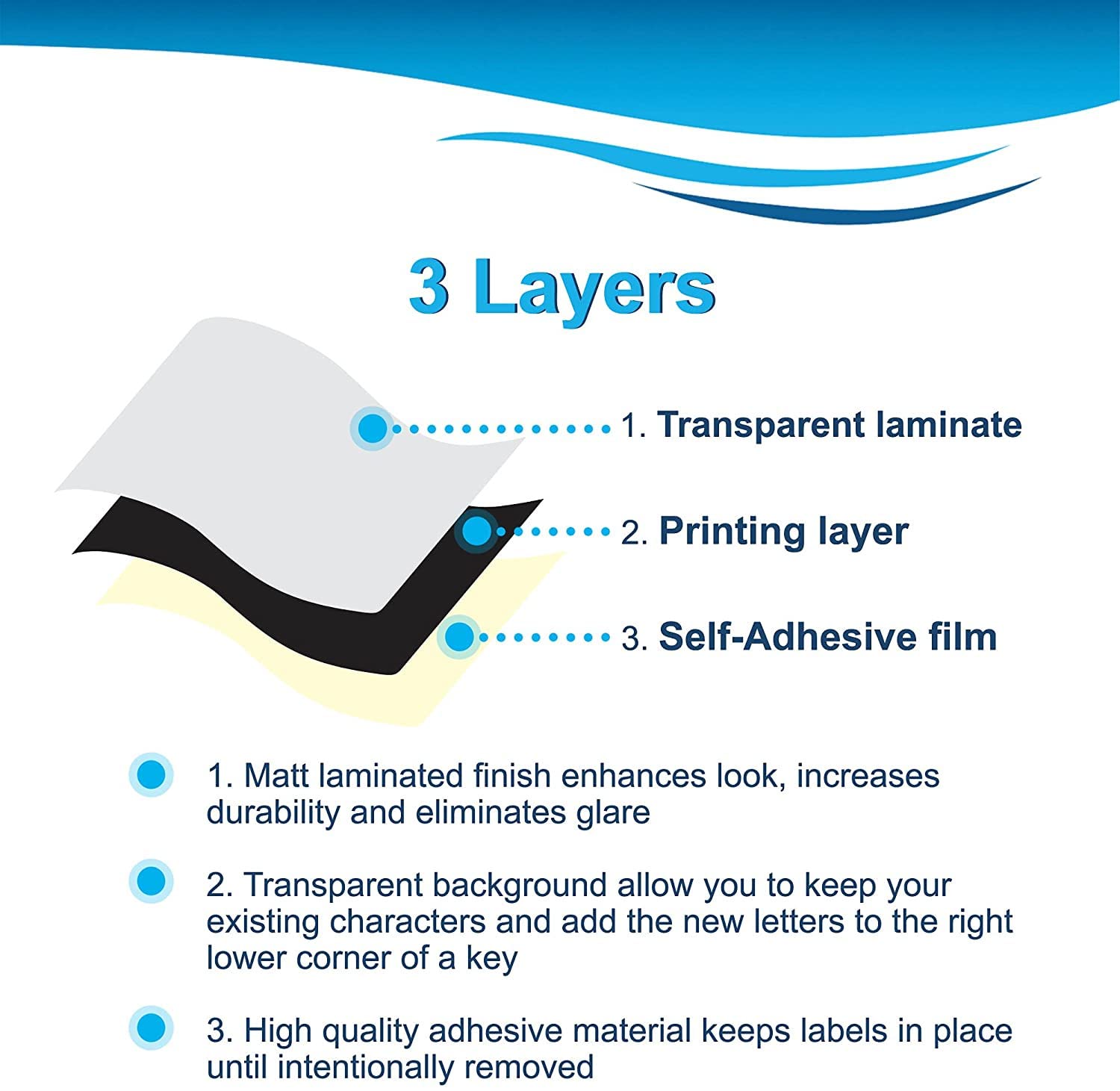 Transparent stickers allow you to keep your existing characters and add the new letters to the right lower corner of the keys;