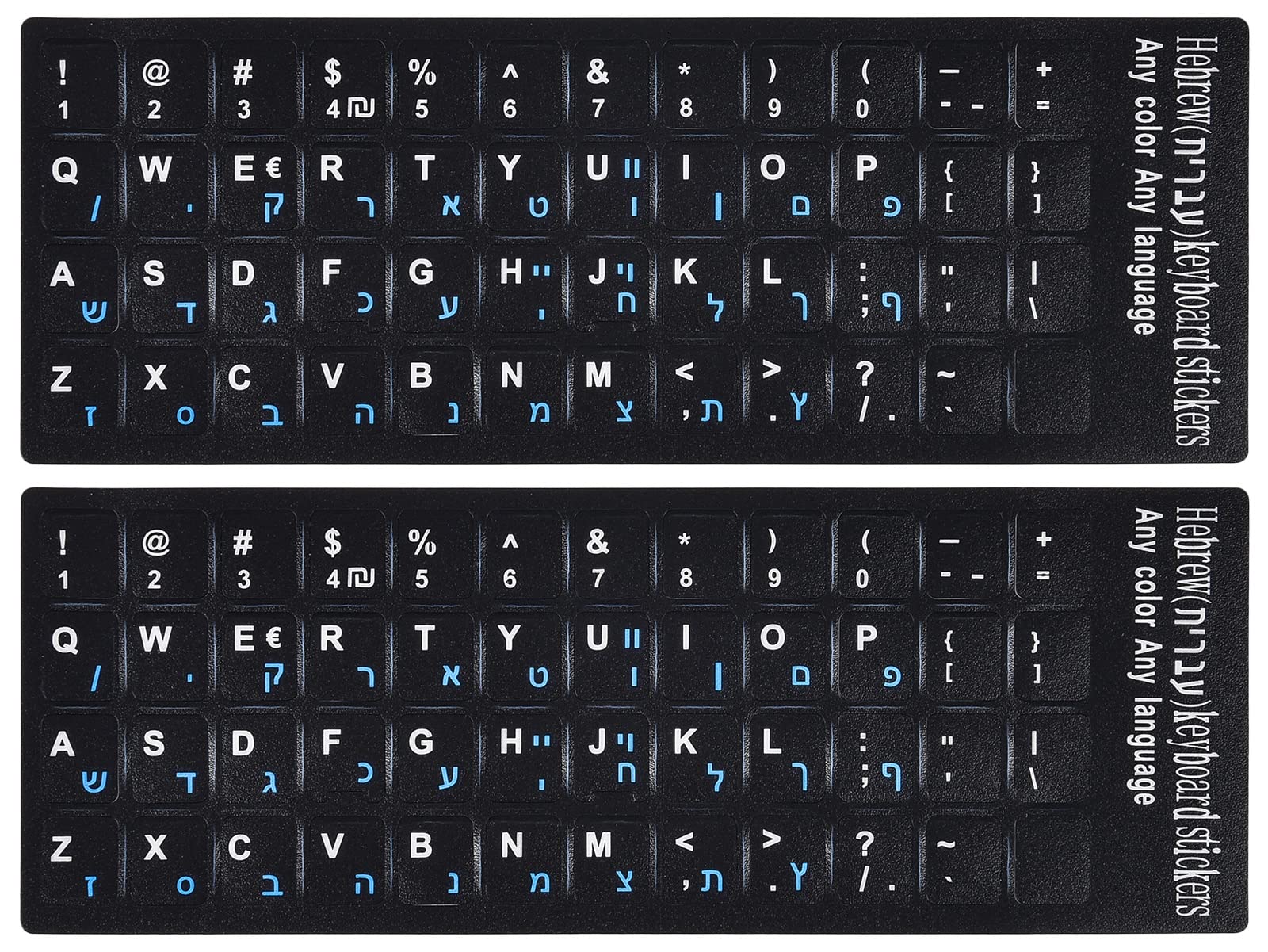 HQRP® 2-Pack Hebrew Notebook & Desktop Keyboard Stickers - Laminated Mat;