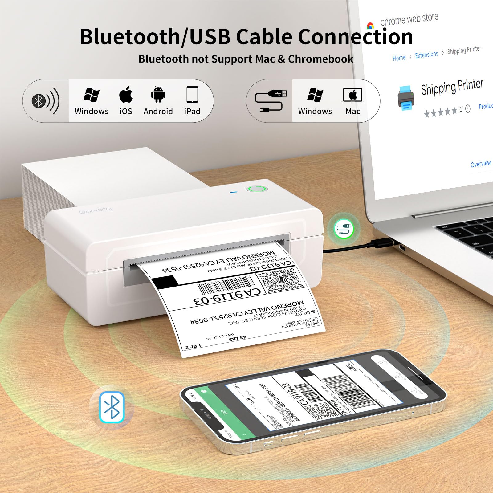 Smaller, Lighter, and More Space-Saving Design: The Gloryang Bluetooth thermal printer is compact and lightweight, taking up less space on your desk compared to traditional label printers, making it perfect for home offices, small businesses, and shared workspaces.