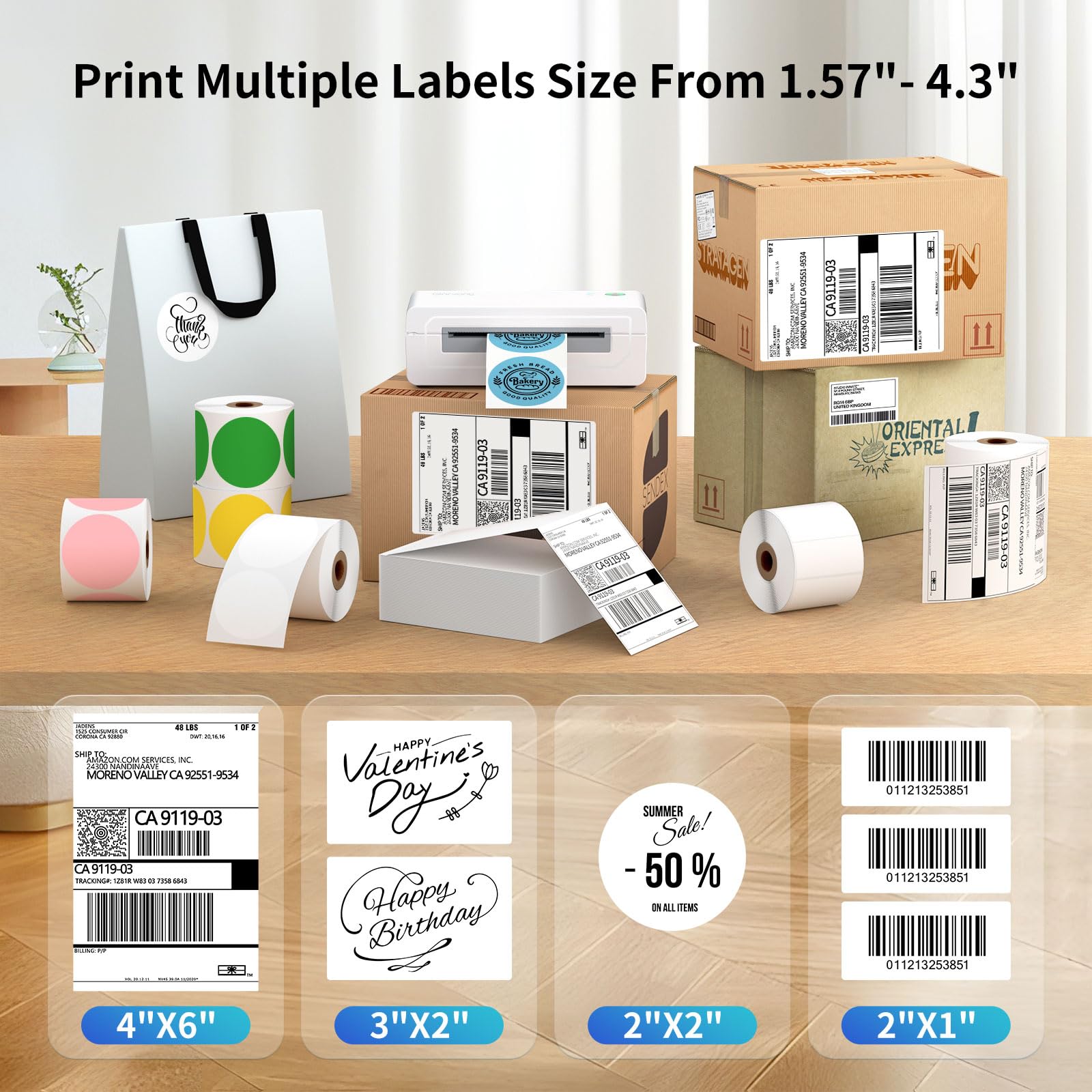 Fast and Clear Thermal Printing for Multiple Label Sizes: Whether you need 4x6 shipping labels or smaller 2-inch and 3-inch labels, the Gloryang label printer delivers sharp, clear prints with fast printing speeds. It supports labels ranging from 1.57” to 4.1”, ideal for small business packages and shipping needs