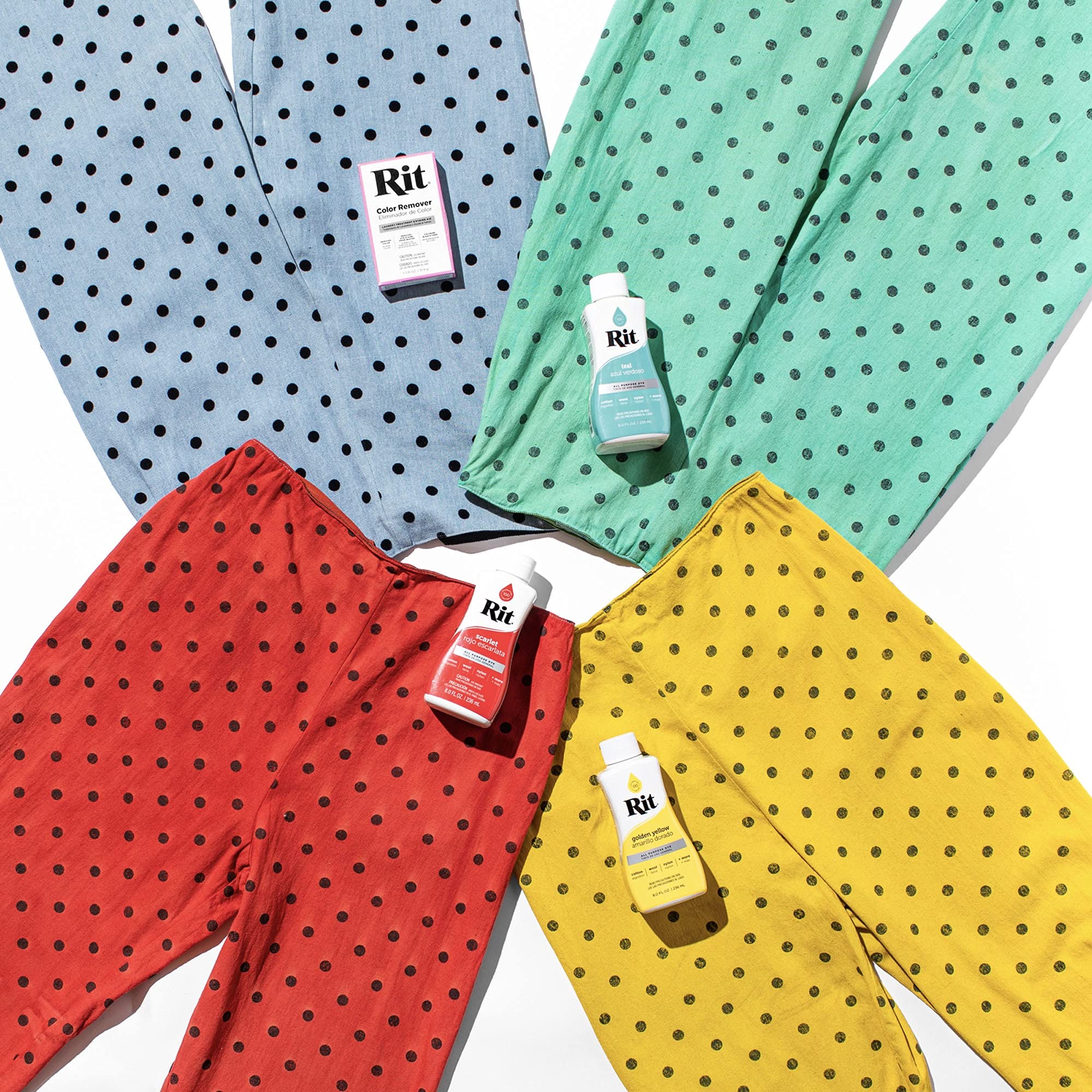 This versatile, easy-to-use and non-toxic liquid dye is ready to deliver vibrant color to almost any type of fabric or fabric blend, including cotton, linen, silk, wool, rayon, ramie or nylon. Perfect for rejuvenating faded clothing, changing the color of apparel, shoes or accessories, coordinating home decor, hiding laundry accidents and so much more. Looking to create something unique? Rit has been tie-dyeing clothing and decor for decades. It's also the perfect tool to create an ombre, dip dyed, marbled or shibori pattern. It can even dye wood, wicker, paper and cork. Plus, because it is a pre-mixed concentrated liquid, you can use a little or a lot depending on your project and have the flexibility to save it for another time. All you need is a washing machine, plastic container or stainless steel sink to get started. This package contains one 8oz bottle. Available in a variety of colors each sold separately. Made in USA.