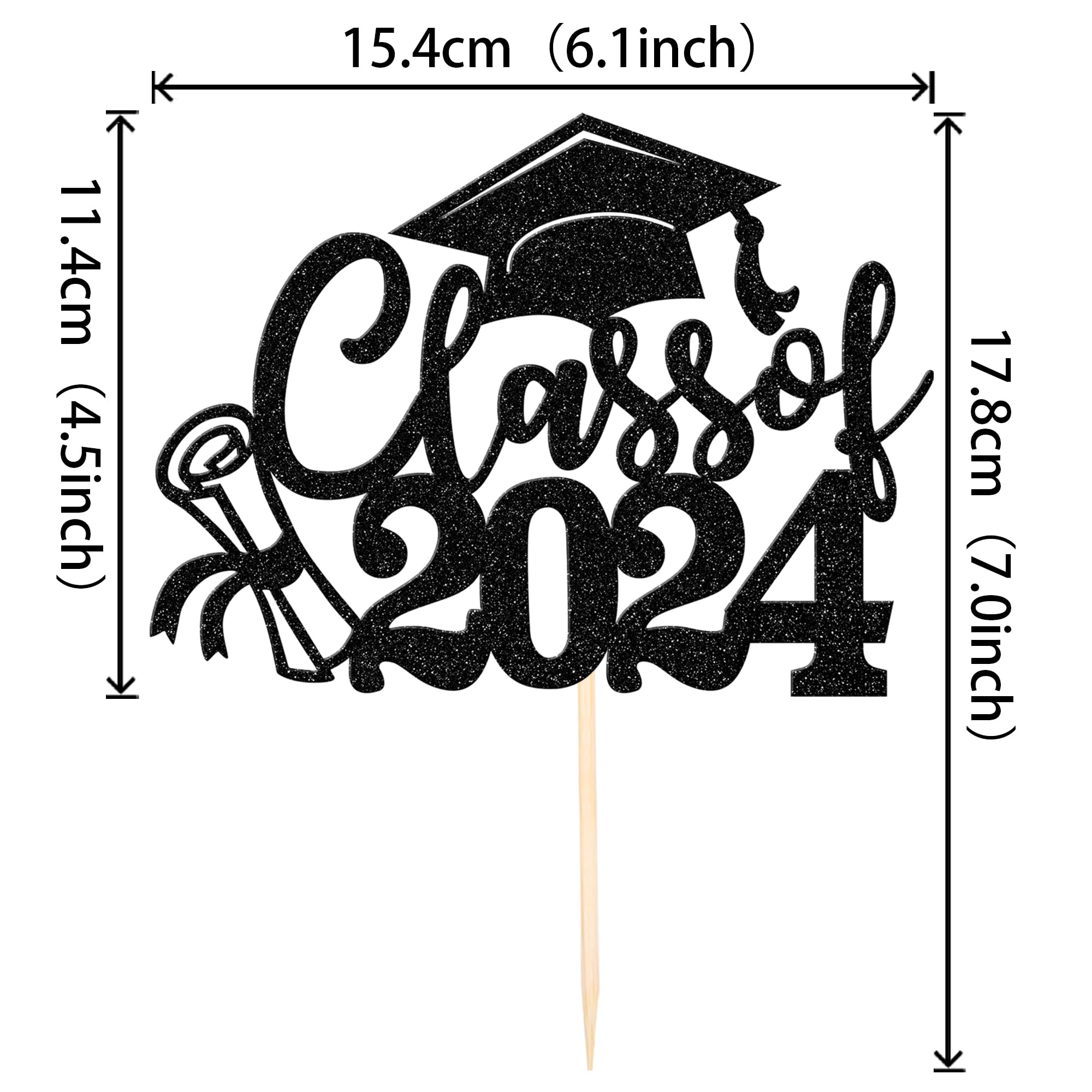 Diploma Congrats Grad Cap Class of 2024 Cake Topper for 2024 Graduation Theme Party Cake Decorations Supplies Perfect for 2024 graduation theme party cake decorations,such as kindergarten, primary, junior, senior high school, college, Master or Ph.D. graduation cake decoration supplies. Pack of 1 pcs. The size is W 6.1 inch * H 8.7 inch / W 15.4 cm * H 22.0 cm ( with stick ) Made of high quality paper card stock and food grade sticks,thick and sturdy. This cake topper is one side glitter, another side is white, and this is intended for decoration only, please do not put them in oven or microwave. If the item you received has any defects, please contact us for refund.we will deal with it within 24 hours.