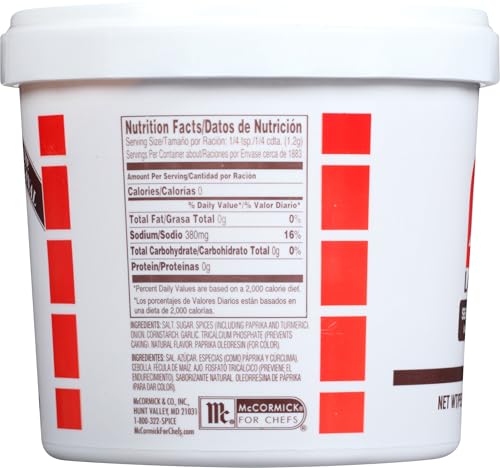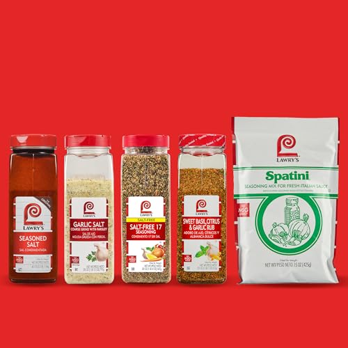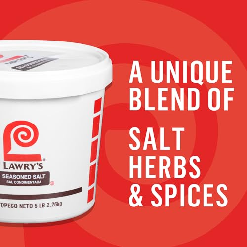 Lawry's Seasoning Salt is a kitchen staple for adding zest to almost any recipe you use for breakfast, lunch, dinner or snack time. Specially made for chefs, all-seasoning salt from Lawry's delivers a signature blend of spices, herbs and salt that adds delicious flavor to any recipe. This product contains a famous blend with infinite uses, offering consistent results and inspiring extraordinary menus. The 5-pound container of seasoned salt enhances almost any dish and is a flavorful alternative to table salt. All-seasoning salt from Lawry's pairs well with pasta, eggs and popcorn and is great for poultry, pork and beef. Use this signature seasoned salt to add robust flavor to casseroles, chicken, steaks and prime ribs. Versatile seasonings can be the keys that help chefs unlock creativity in their kitchens. With such a large amount of seasoned salt on hand, your options are almost endless. Season corn on the cob, Chex mix, salads or any dish that needs a kick of savory flavor. Buying in bulk has other benefits, too. Investing in all those little spice jars at the store can get pricy. Still, dried herbs and spices are a cost-effective and time-saving alternative to preparing and using fresh ingredients. Buying herbs and spices in bulk will save you money every time. Plus, you can reorder them less frequently because dried ingredients have long shelf lives when stored correctly. Lawry's Seasoned Salt comes in 5-pound containers that are ready to use with no preparation necessary. This product is kosher and made with no added MSG, artificial flavors or colors from artificial sources, so you can feel confident serving the seasoning to all your guests.