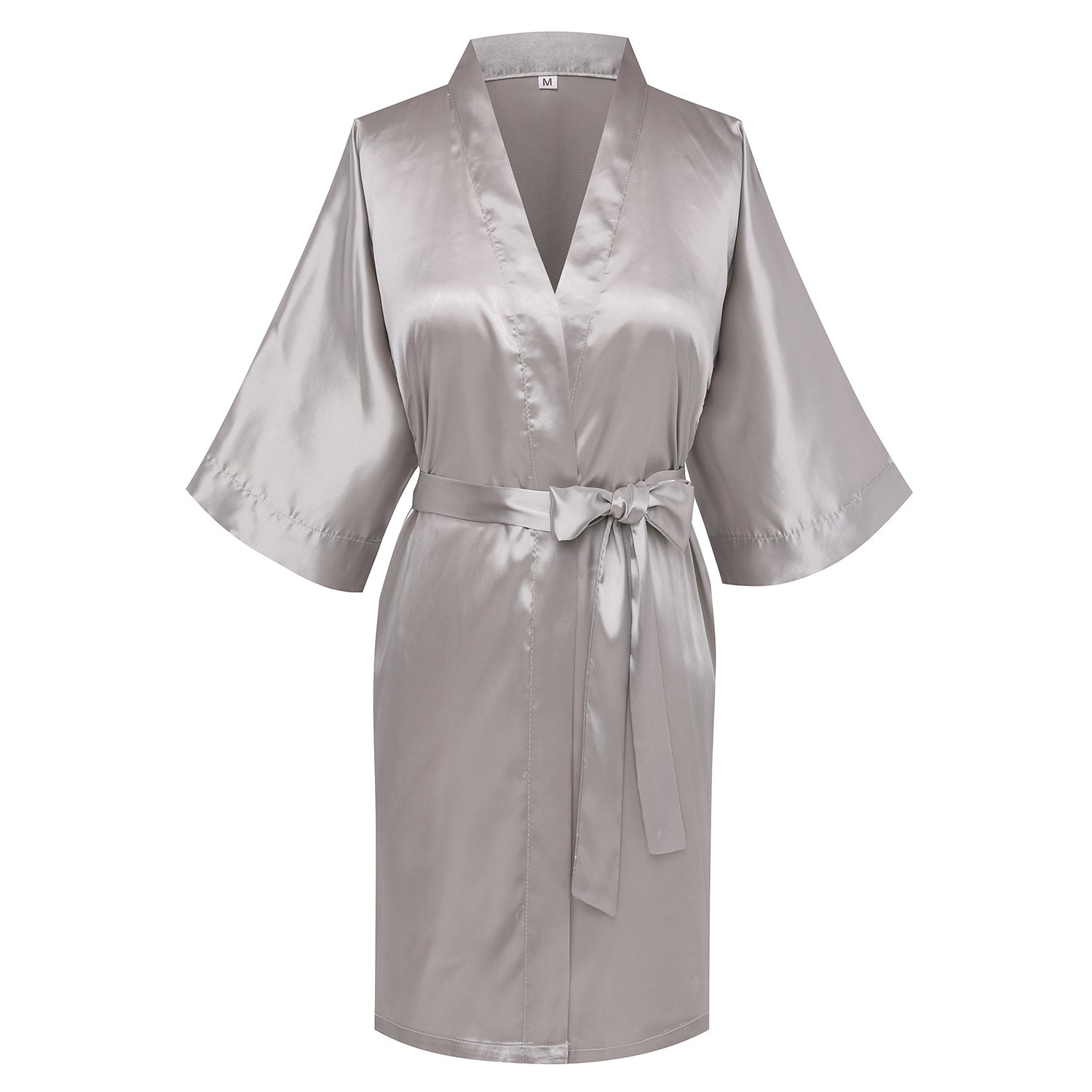 Solid color satin robes for women with elegant oblique V-neck clear design.