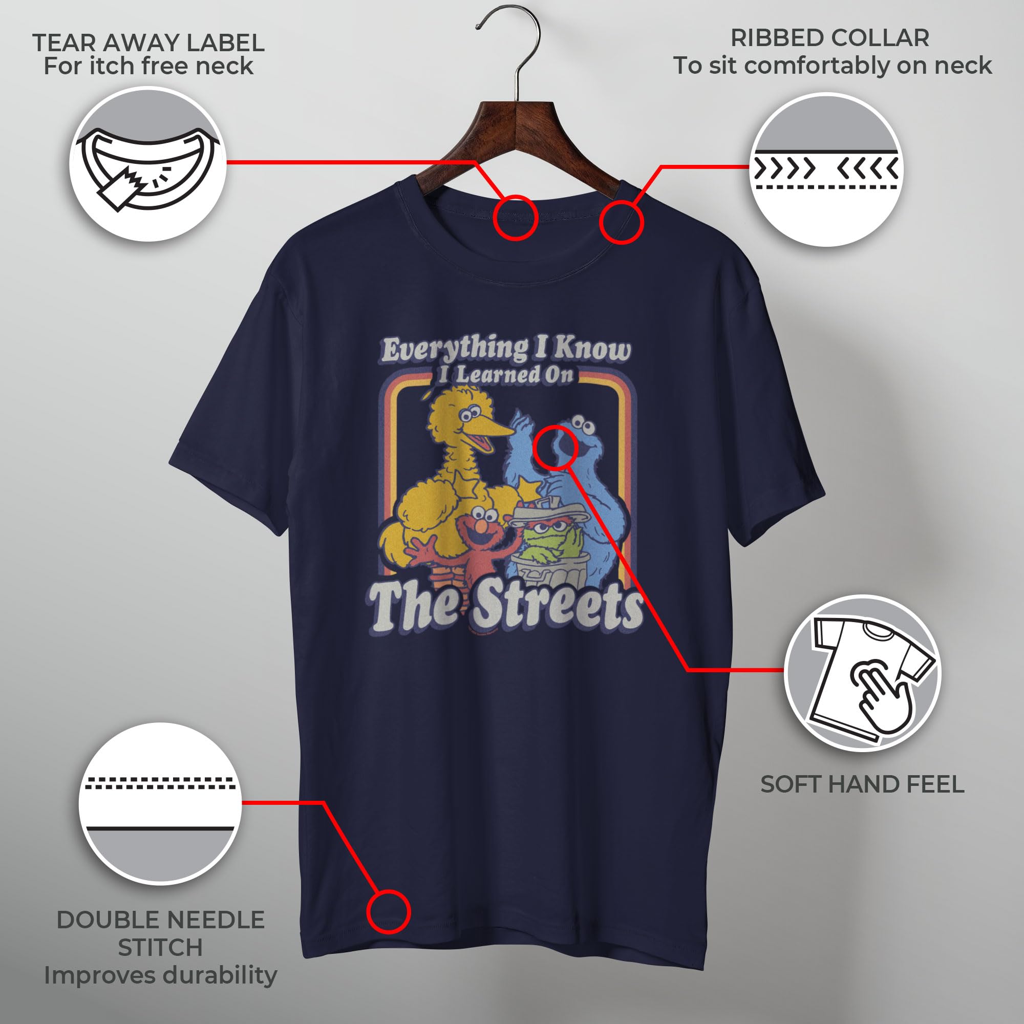 Description Who doesn't love Sesame Street?! Show your appreciation for the series we all grew up with for generations with retro-inspired apparel for the whole family from the iconic children's series Sesame Street! Join Big Bird, Cookie Monster, Bert, Ernie, Elmo, and more for some good old fashioned fun and learning!