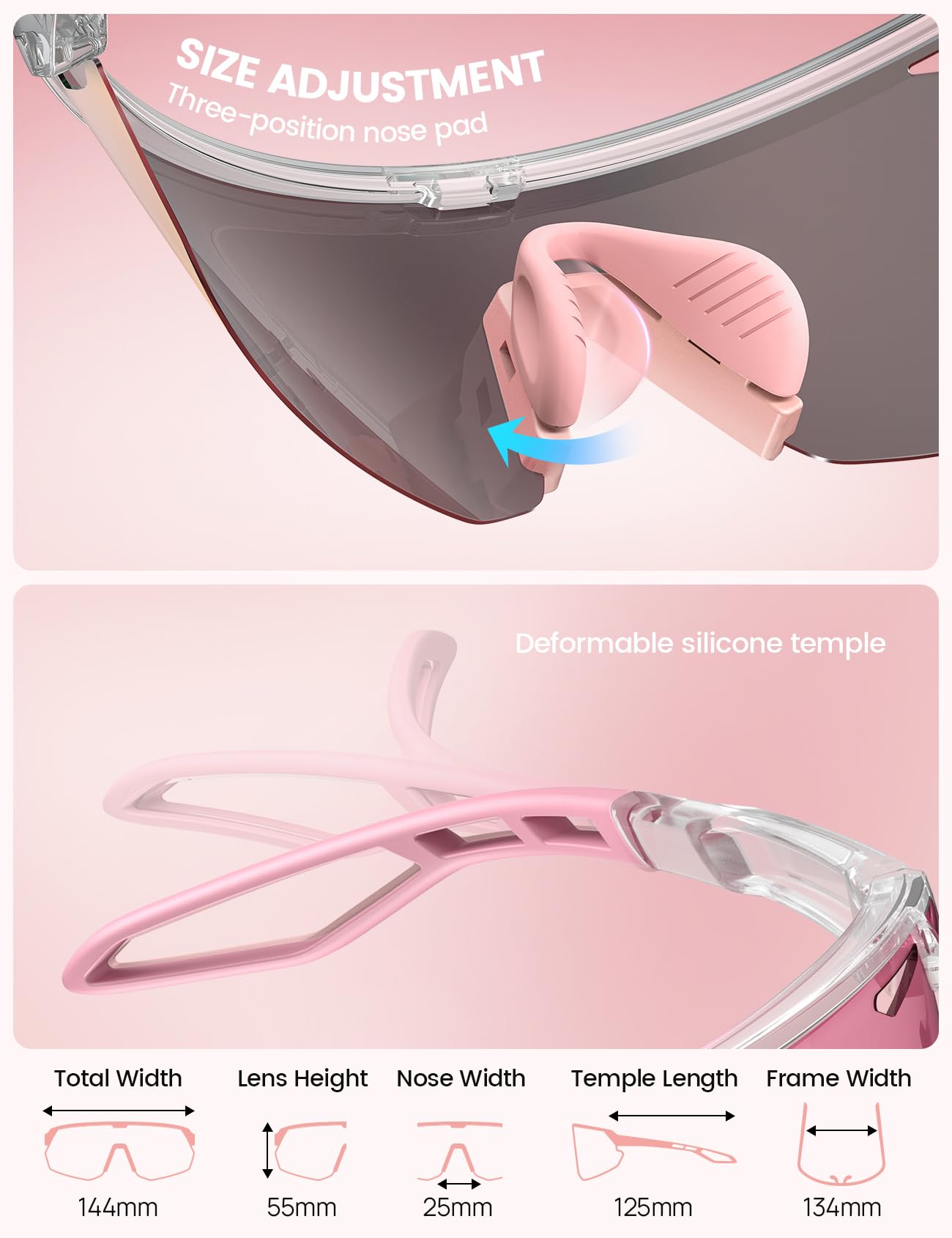 【Size Adjustment for Comfortable Fit】The nose pads are designed with three adjustable levels, you can freely adjust the height of the nose pads, the temples are designed with skin-friendly silicone, making it more comfortable to fit different facial shapes.