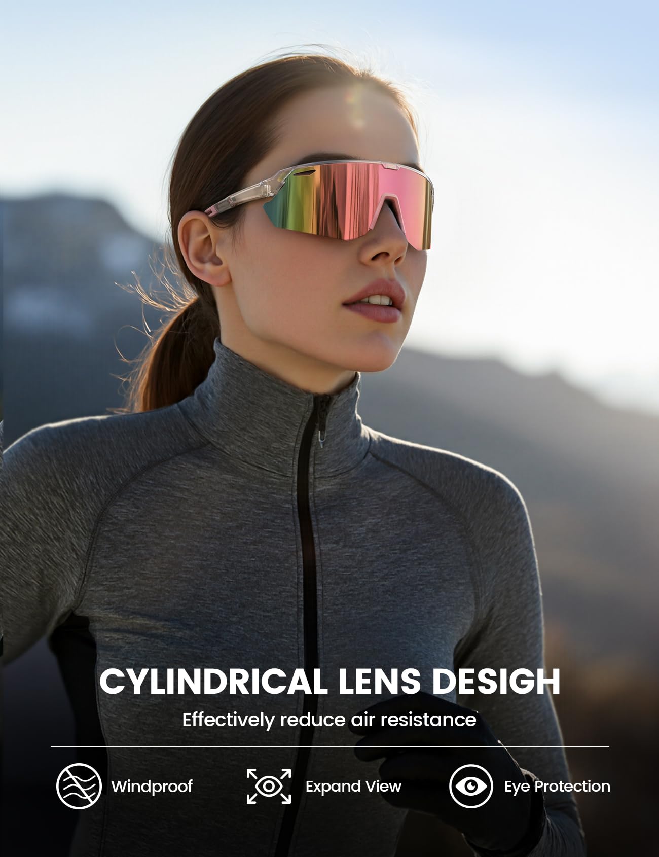 【Impact-resistant TAC Lens & Super Wide Field of View】The cylindrical lens design is matched with the surround structure, which allows you to have a wider field of view for safer riding, and also effectively reduce air resistance. With impact-resistant TAC lenses, keeping you safe during exercise.