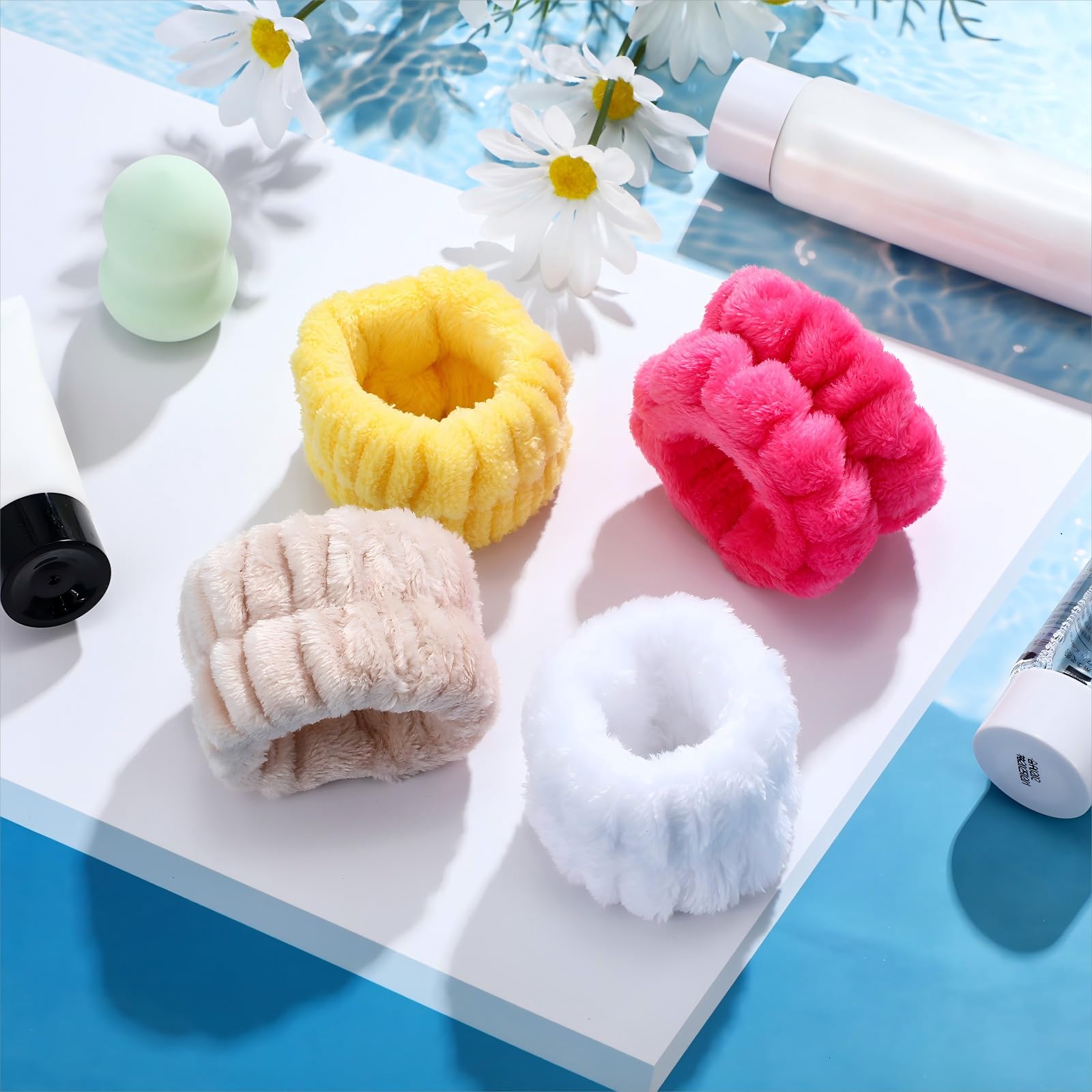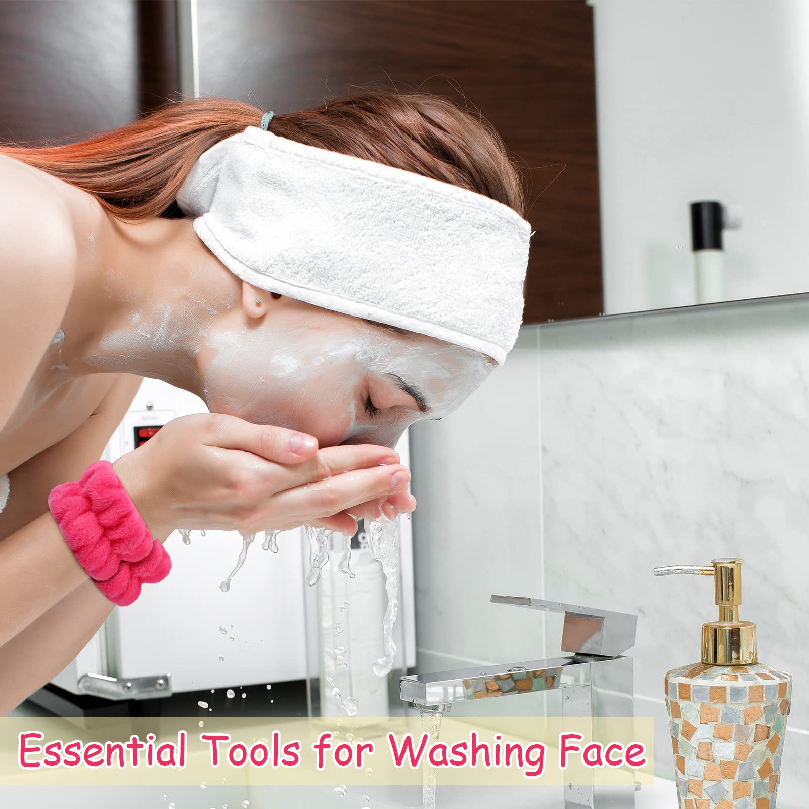 Wrist spa wash band set: there are 4 pairs of microfiber wristbands in different colors, you can wear these cleansing cuffs in line with your headband to reduce and prevent liquid from spreading and spilling down to your arms when washing