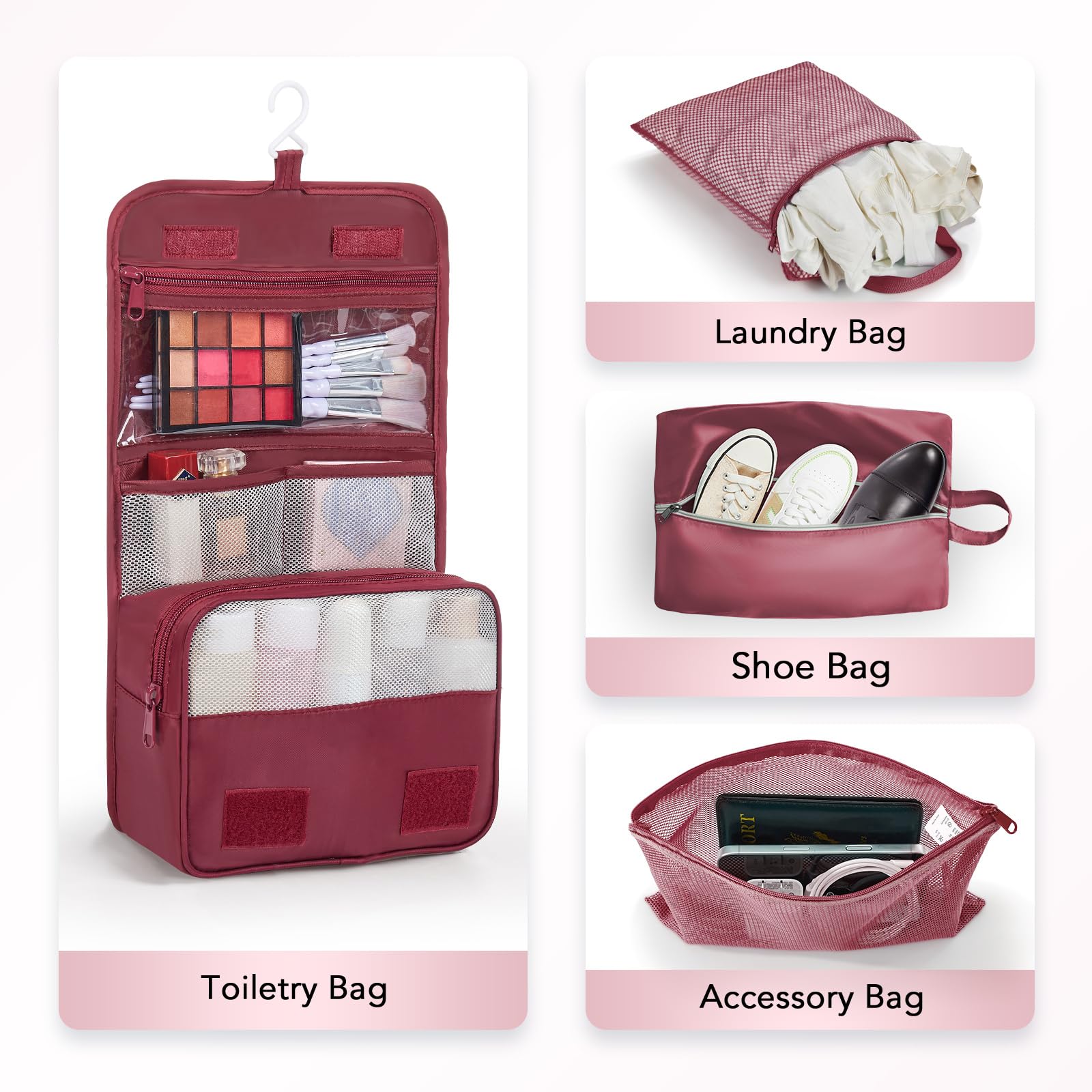 All-in-One Travel Storage Solution - Say goodbye to chaotic packing! This comprehensive set includes four compression packing cubes in varying sizes (XL, L, M, S) to accommodate everything from bulky coats to delicate tops. Plus, enjoy added convenience with a hanging toiletry bag, shoe bag, machine-washable laundry bag, and versatile pouch—all designed to keep your luggage perfectly organized and clutter-free.