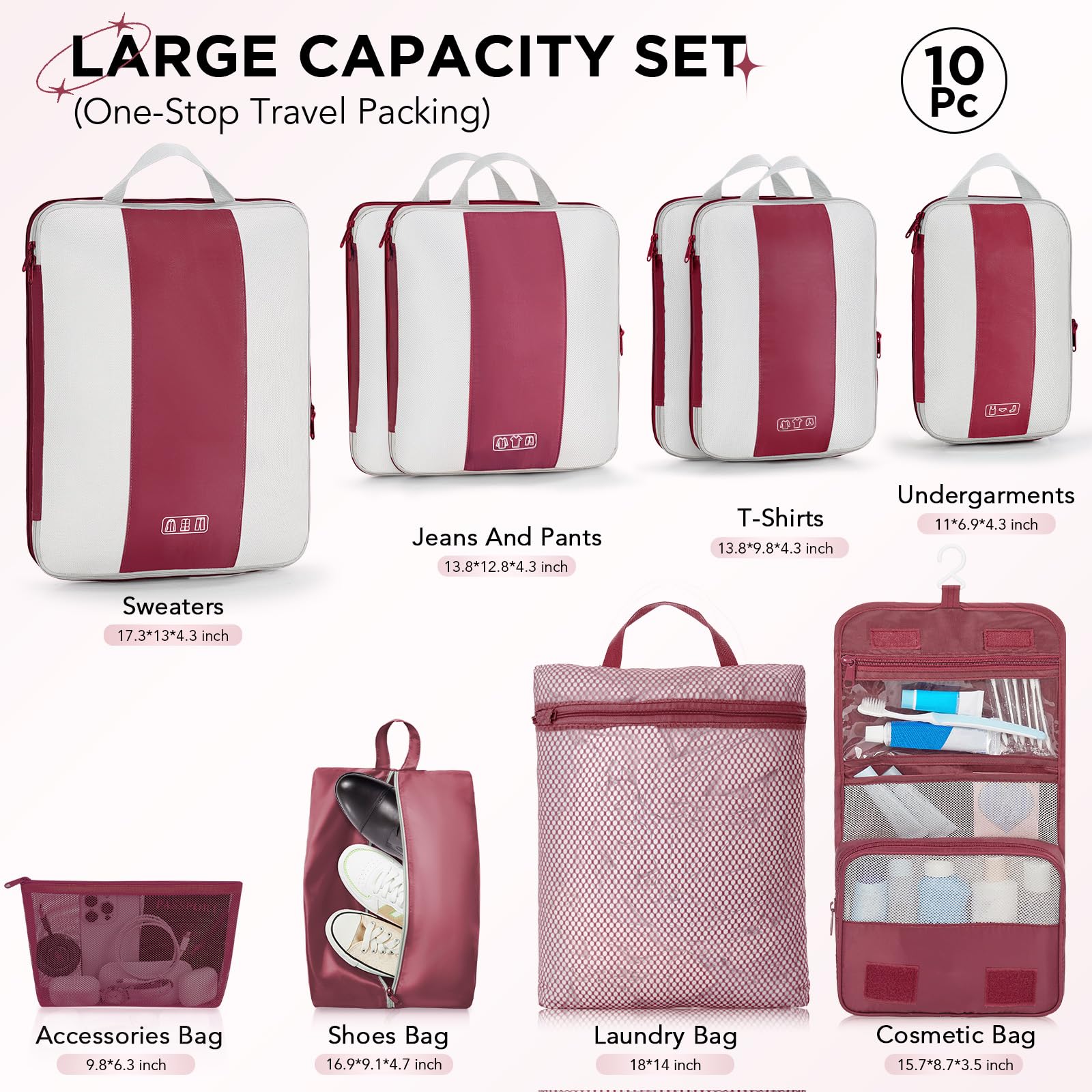 Ready for Any Adventure - Whether you’re heading out for a weekend getaway, a business conference, or a month-long backpacking trip, This high-capacity 10-piece compression cet seamlessly accommodates 20-32-inch suitcases of all types. We’re here to ensure you travel smarter, pack better, and enjoy every moment of your journey with peace of mind.