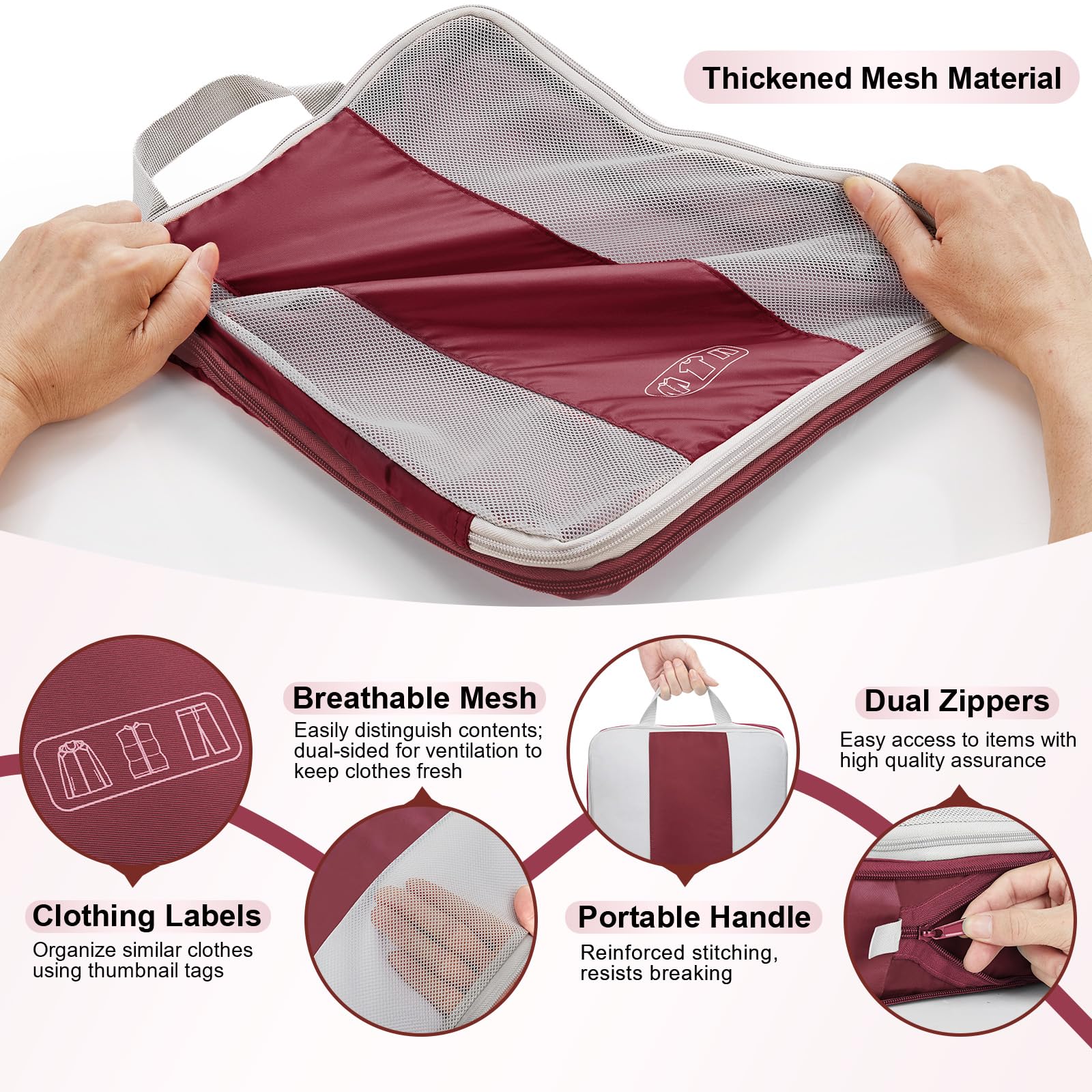 Maximize Packing Efficiency - Make every inch of your luggage count! These compression cubes work like a mini vacuum sealer, using an extra outer zipper to reduce bulk and create more space. Pack more clothes without sacrificing options—your favorite outfits, now travel-ready.