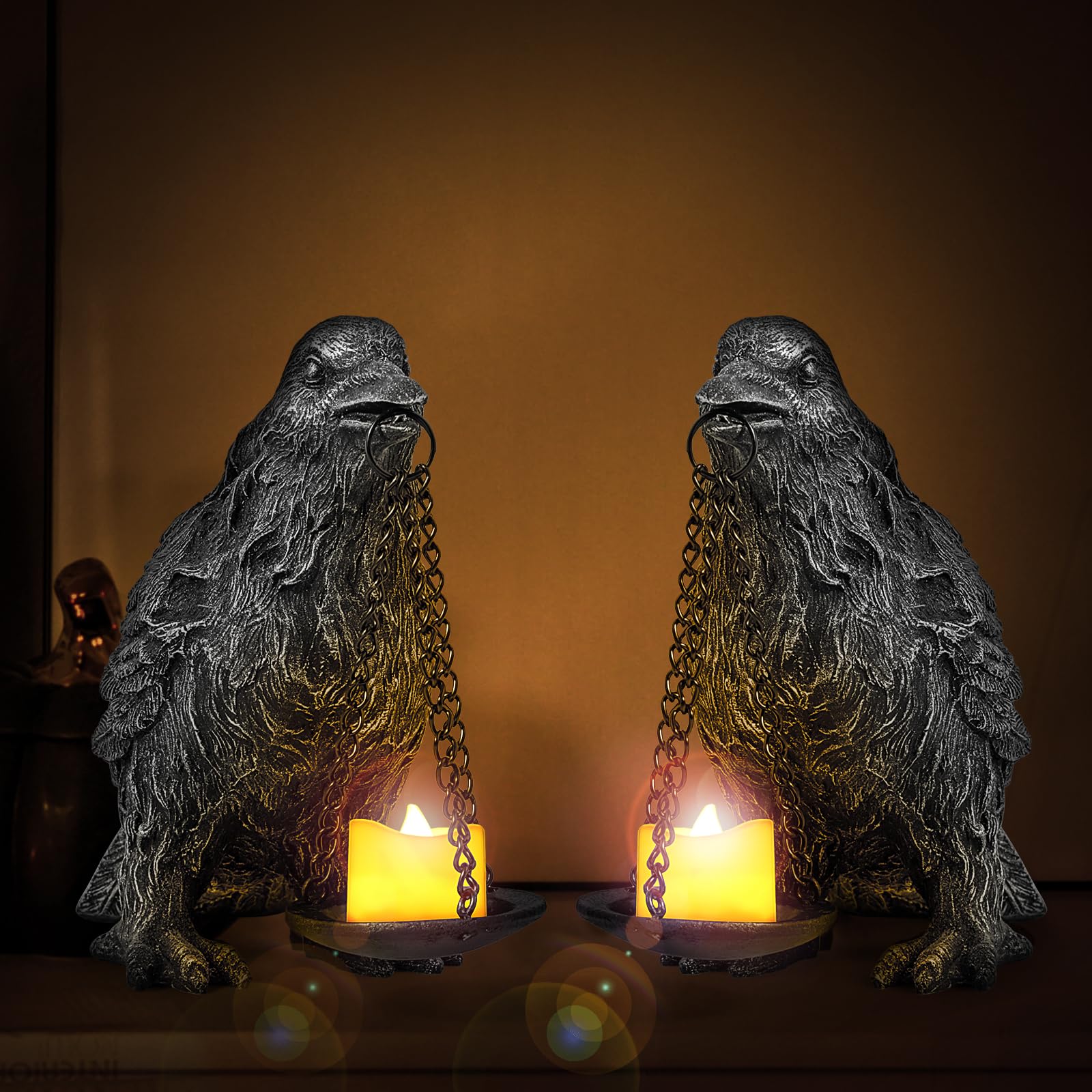 Gothic Home Decor Fake Crow Light Holder Raven Lamp Tealight Candle Holder Resin Statue