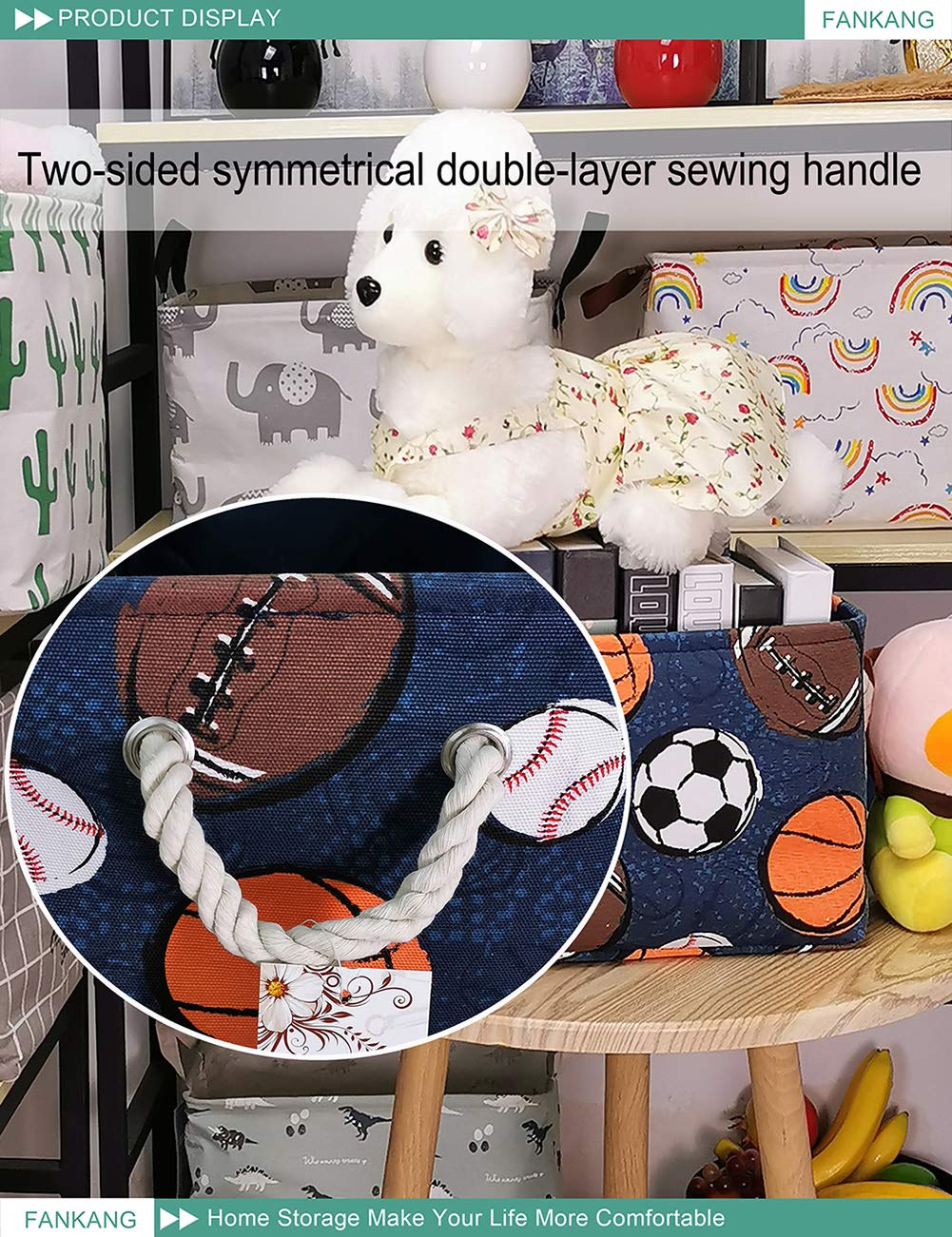 Easy to carry: The lightweight canvas storage bins with handles allow you to carry your load easier. Wire-rimmed edges add form and stability. Help your kids clean up their act with our cute storage bins.