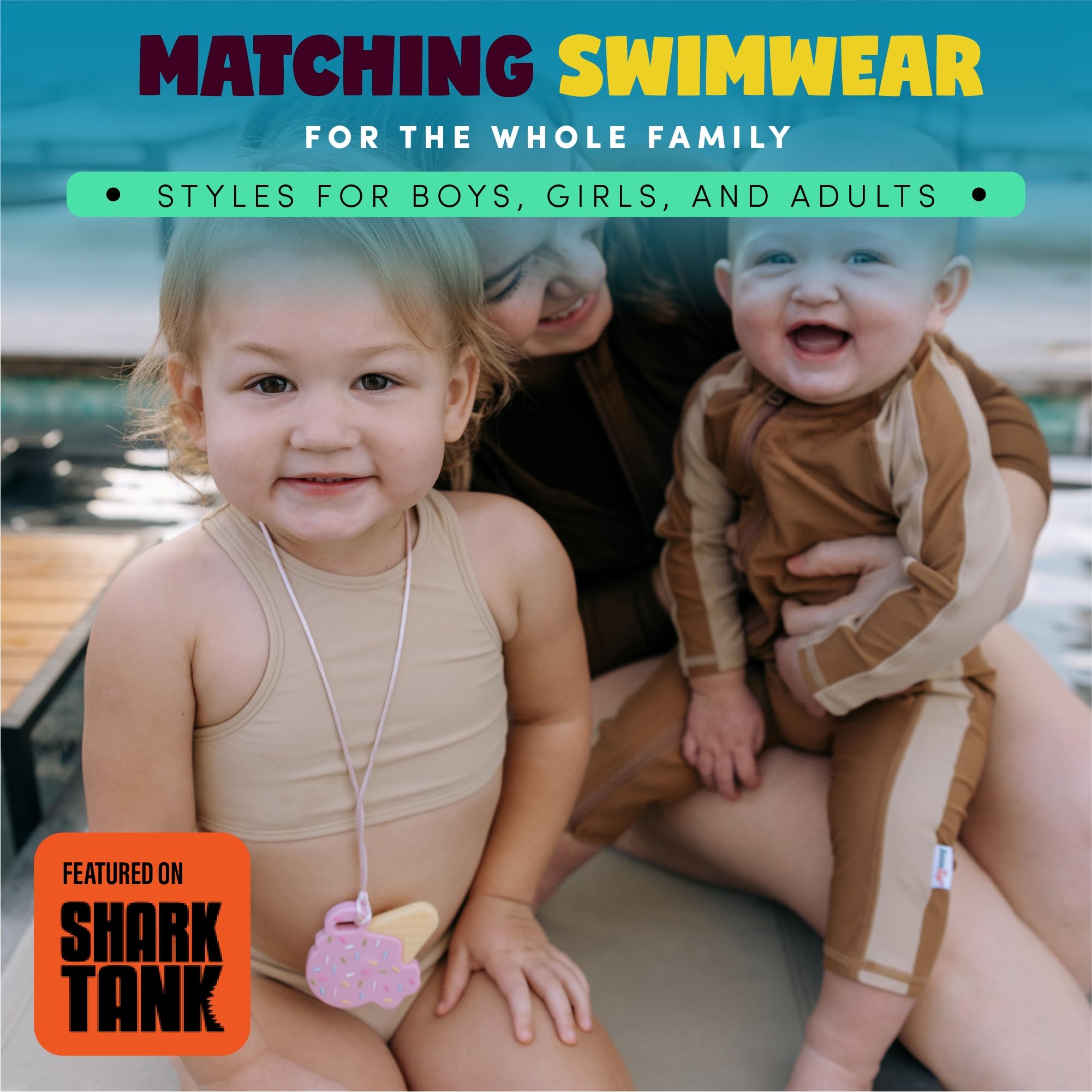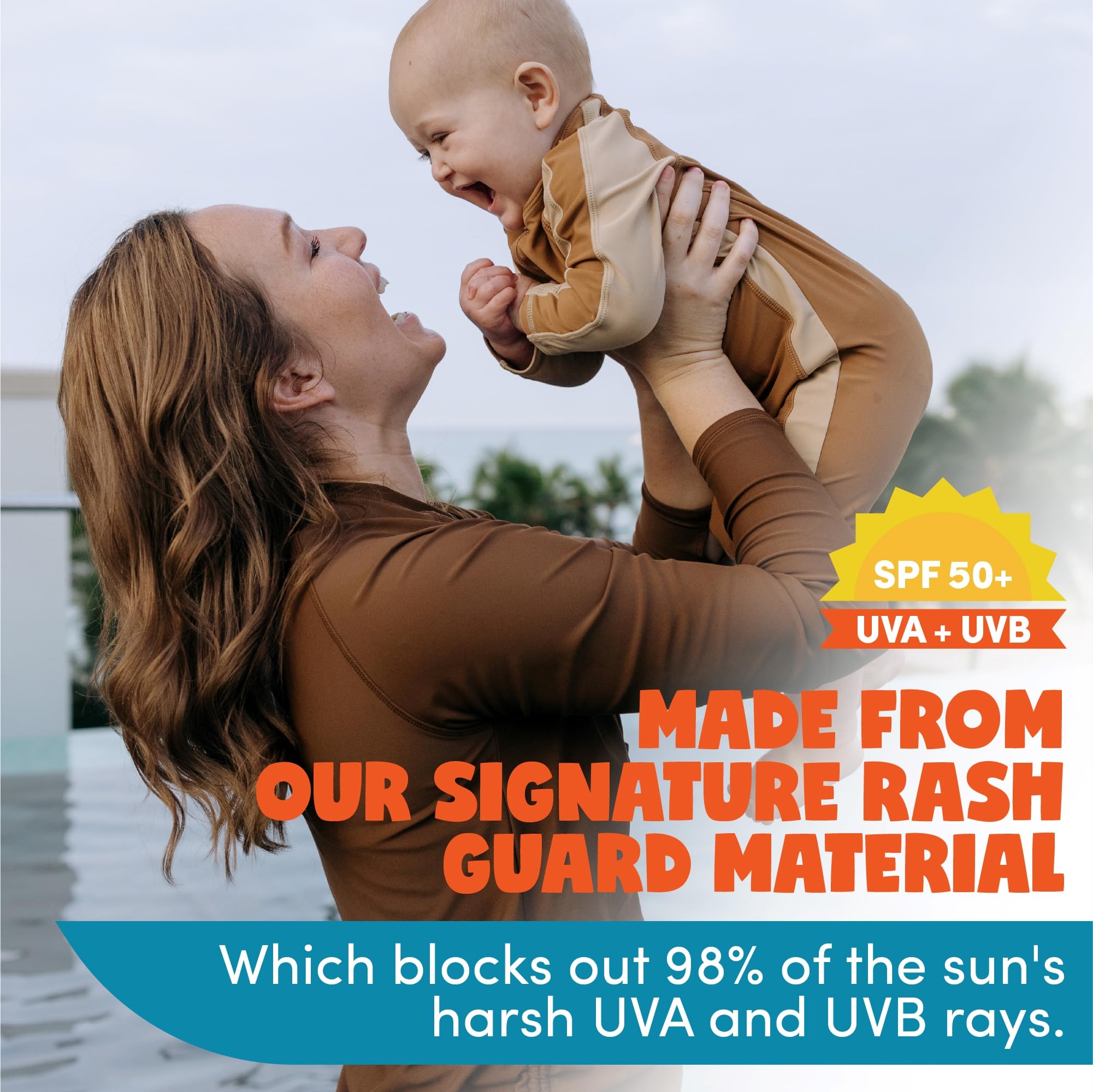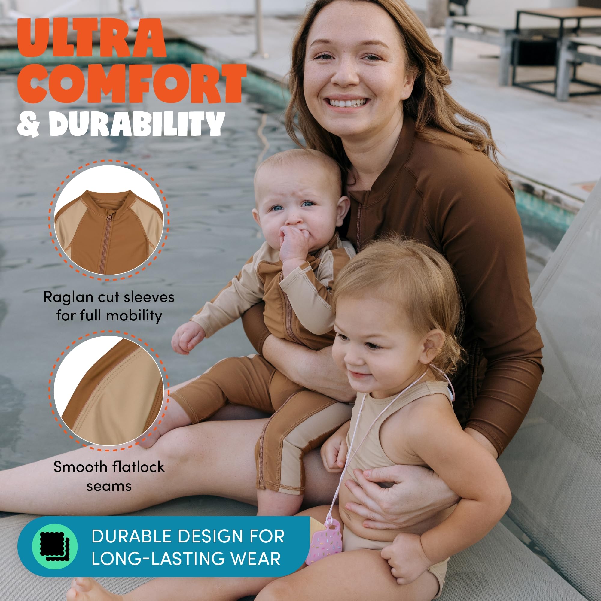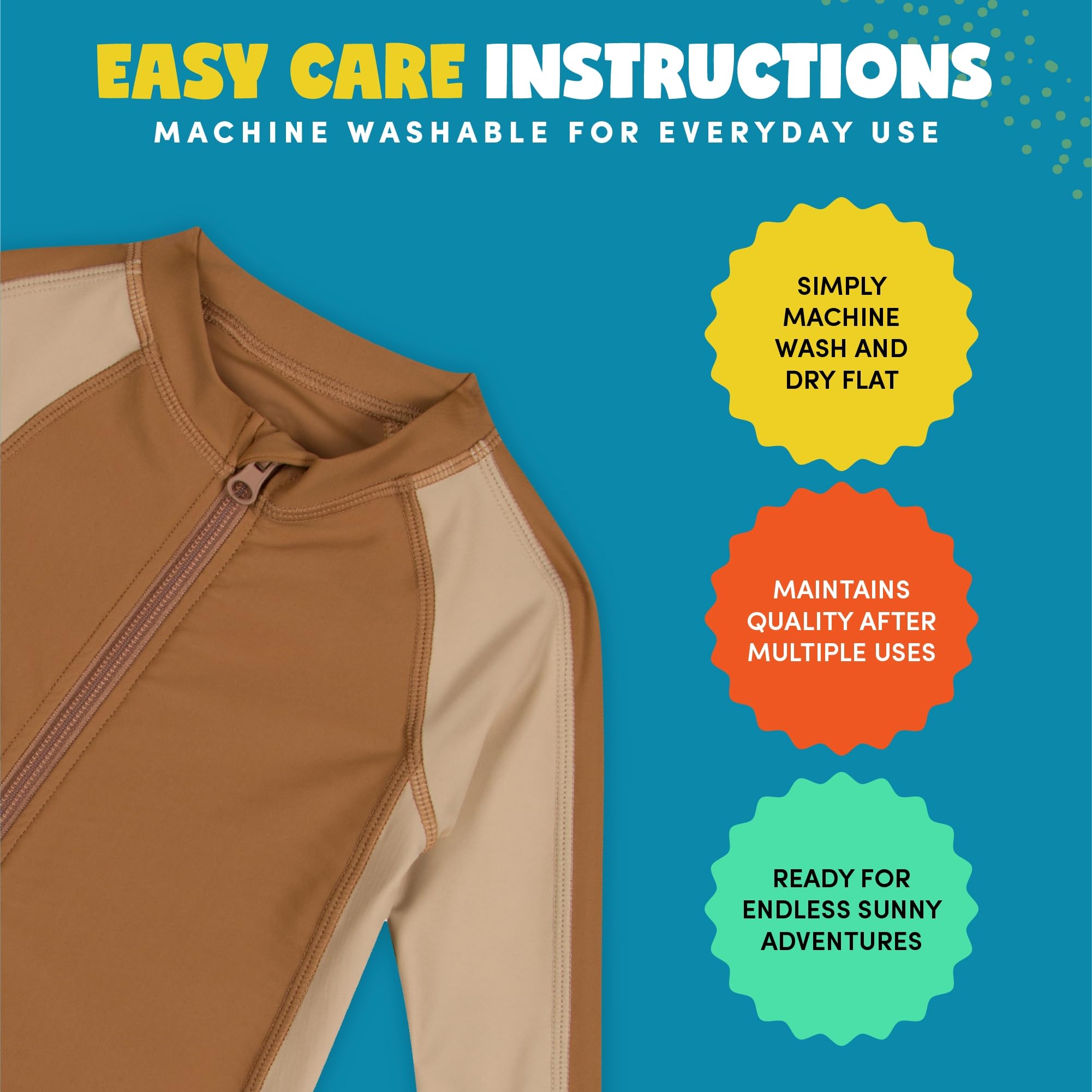 ULTRA COMFORT AND EASY CARE: Raglan cut sleeves for enhanced mobility and flatlock seams throughout the bathing suit provide for ultimate comfort and durability of the toddler swimsuit for boys giving full, free range of motion. Simply machine wash, line dry and your baby is ready to enjoy another day protected from the sun in this infant swimsuit.