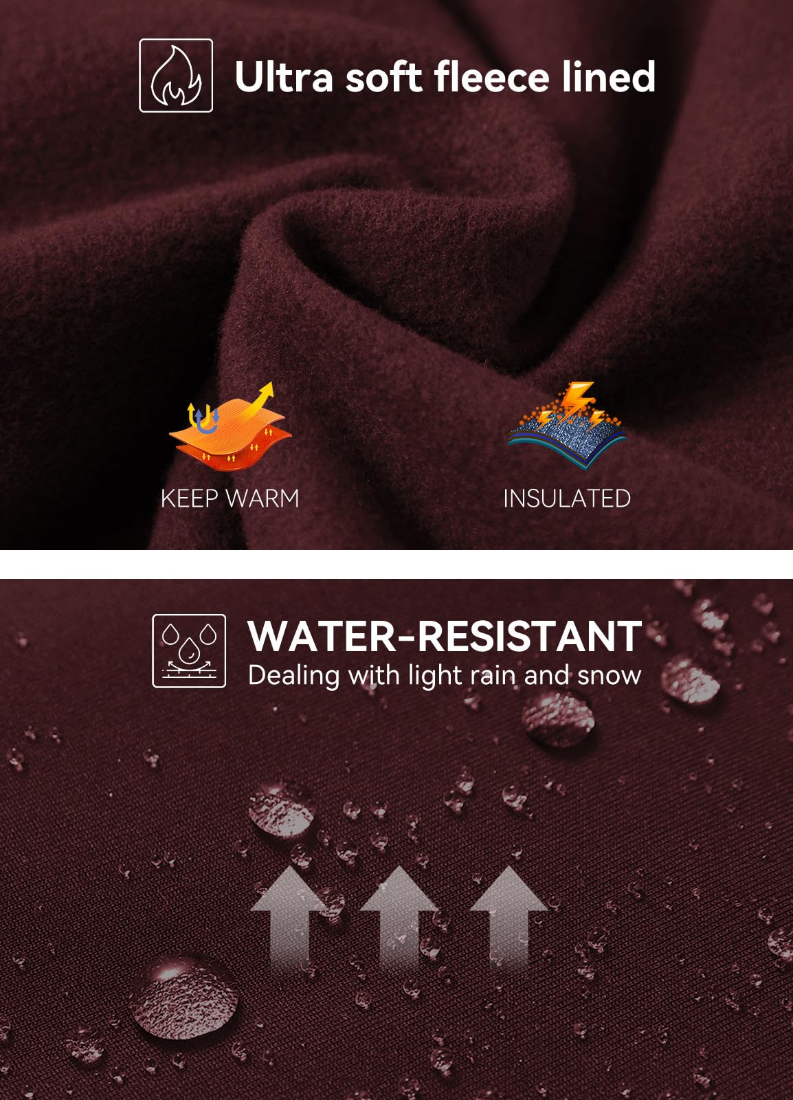 Warm & Water Resistant: The fleece lined leggings women is made of soft fleece inner layer traps heat to keep you warm & comfortable, perfect for cold days under 40°F. Water resistant fabric can handle light rain for a short time or keep dry on snowy days and provide wind protection.