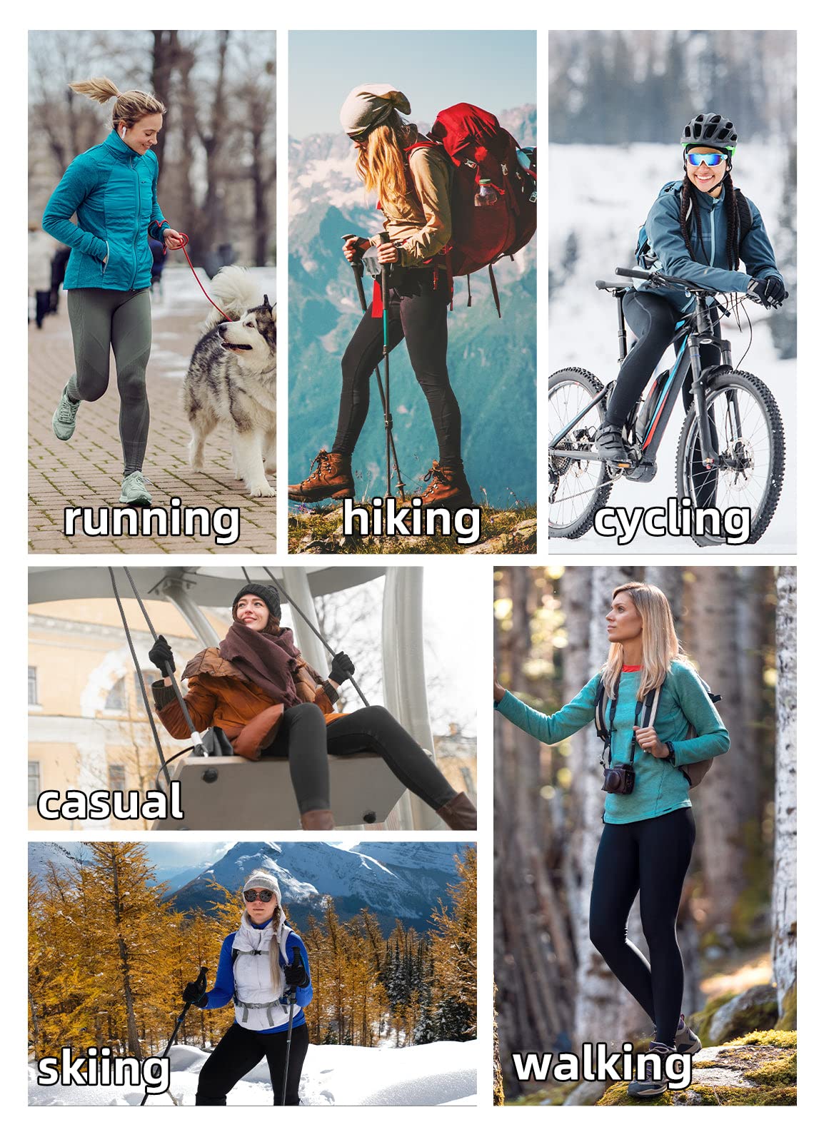 Multi-scenario: Perfect for running, hiking, cycling, travel, yoga, skiing, skating, camping, strolling and ice skating, especially for cold places. It is a great choice to wear outside or as underwear leggings.
