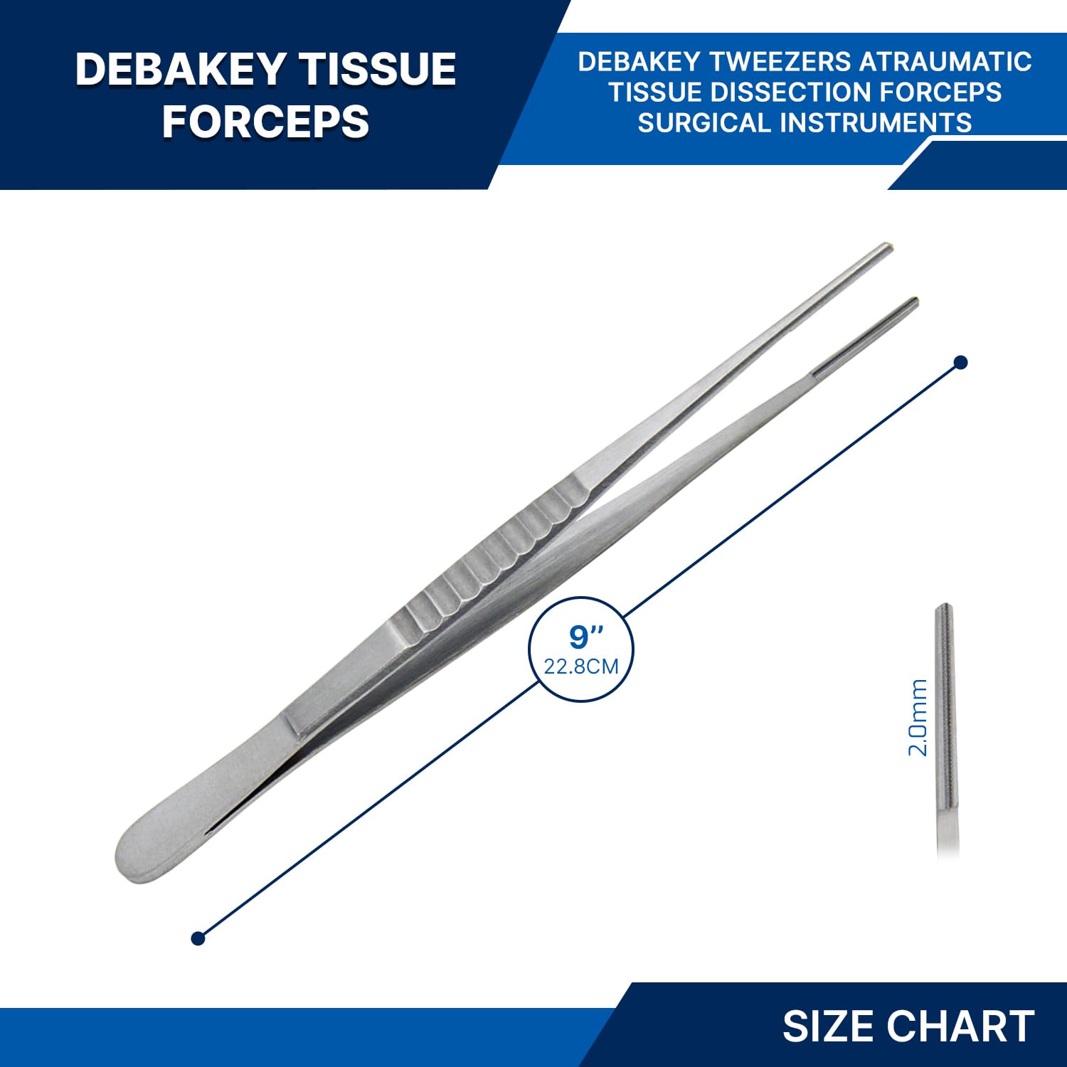 Debakey Tweezer ": Froceps Surgical Atraumatic Dental Veterinary New Stainless Steel Picking Instruments. Manufactured for Optimal results and Precision. Debakey forceps are a type of atraumatic tissue forceps used in vascular procedures to avoid tissue damage during manipulation. DeBakey Atraumatic Tissue Forceps are a versatile thumb forceps used in numerous surgical procedures. They are commonly used for grasping fine tissue and blood vessels or soft tissue dissection. The narrow tips and atraumatic teeth cause little to no damage to the tissues. Avaliable Sizes:- 6",7",8",9",10",12"