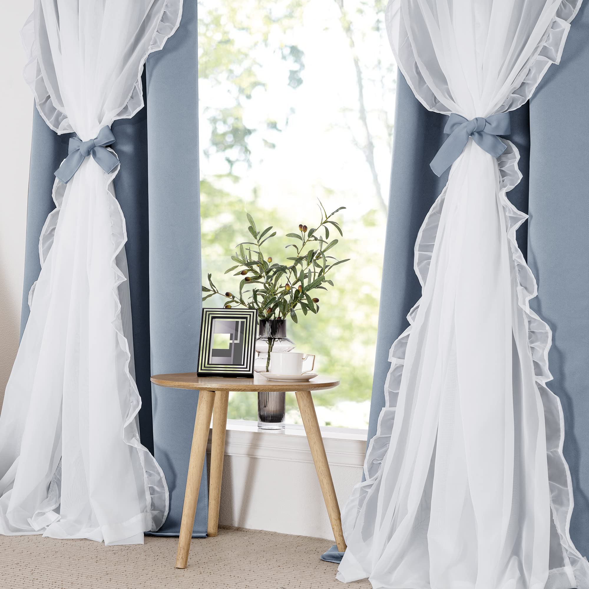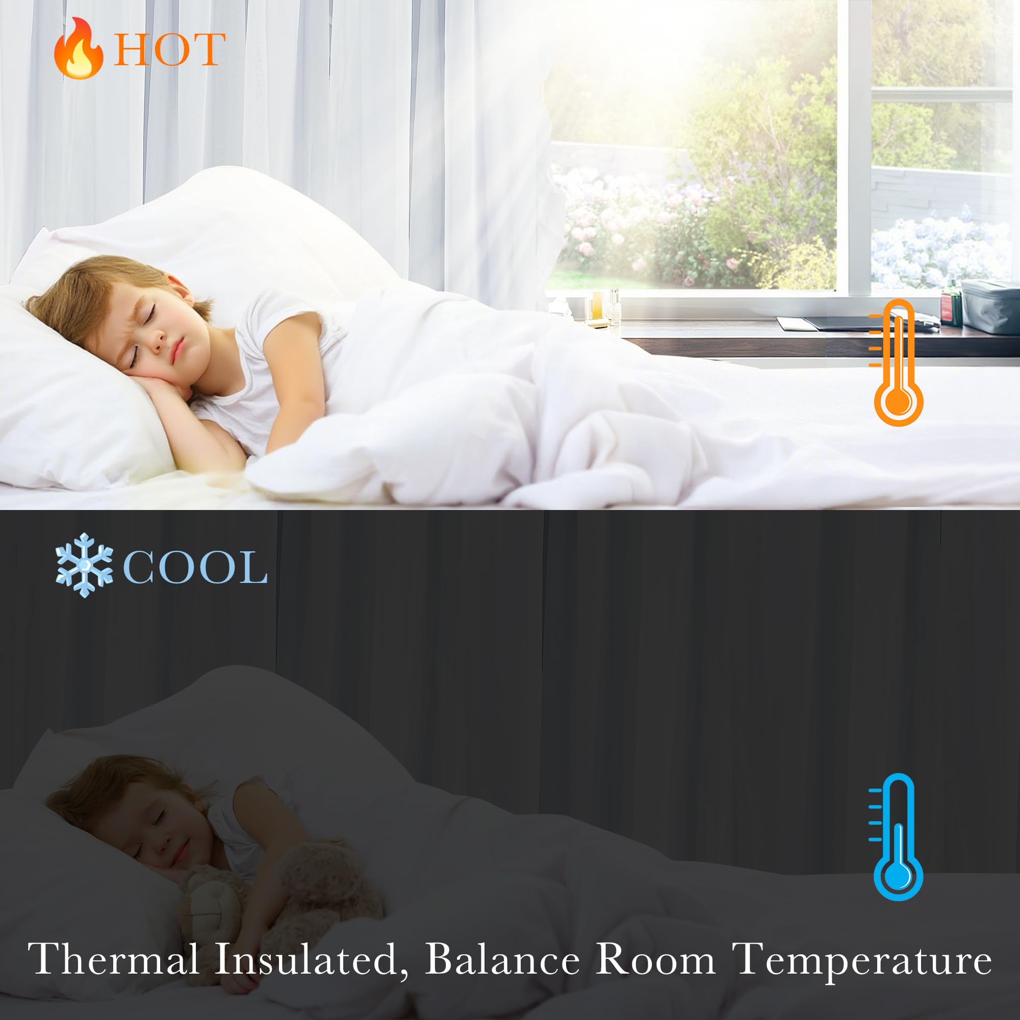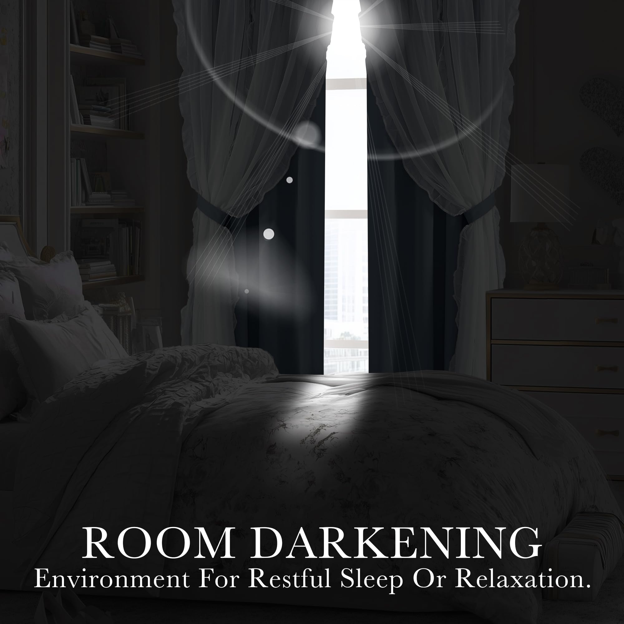Double Layers: Made of 100% polyester fabric, block out a fair amount of light & heat while adding privacy. The white sheer panel bring an elegant and luxurious feeling