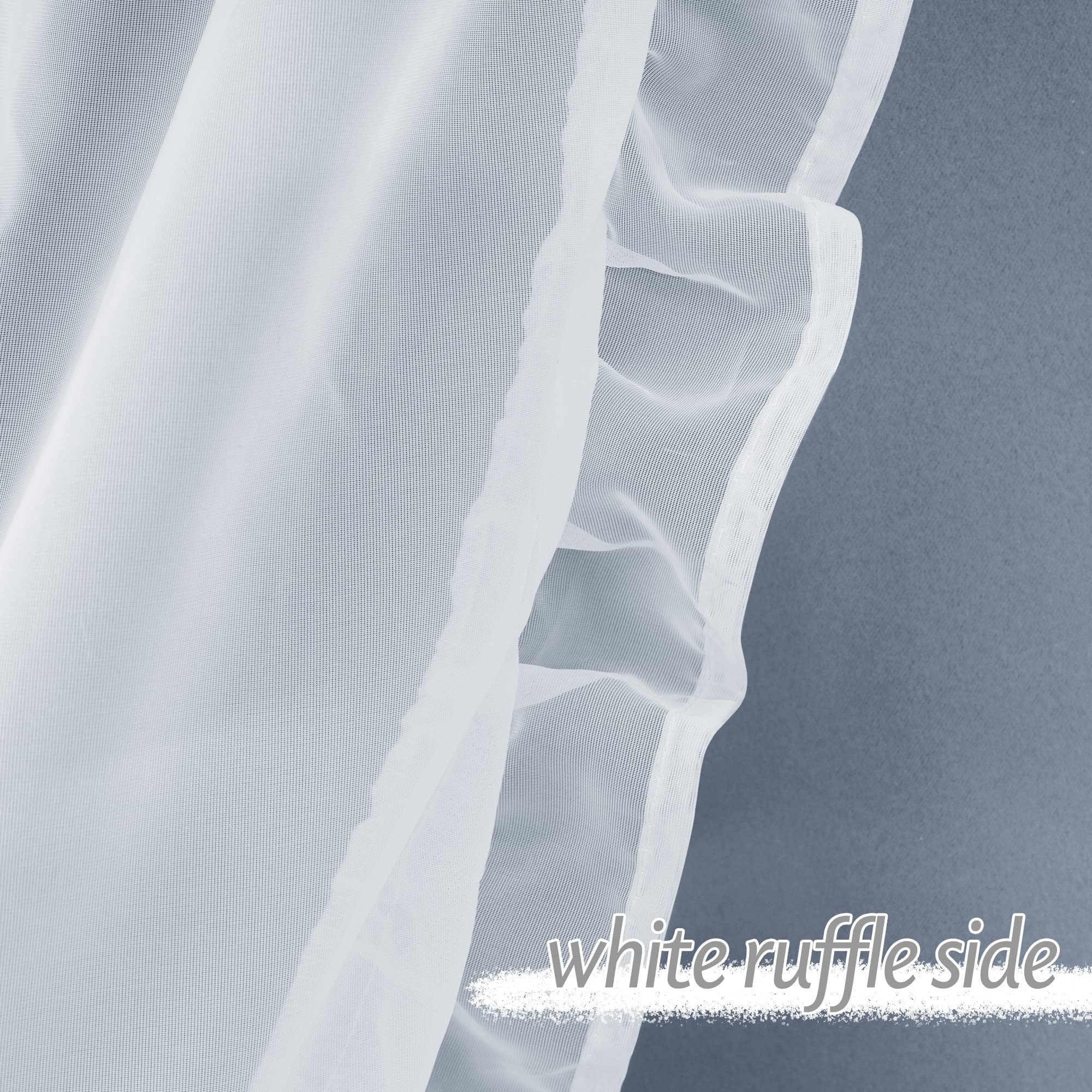 Ruffle Sheer: The fabric is perfect and the ruffle adds a nice charm, something soft and feminine and these are perfect. Super soft and thick, very pretty for a rustic/farmhouse look