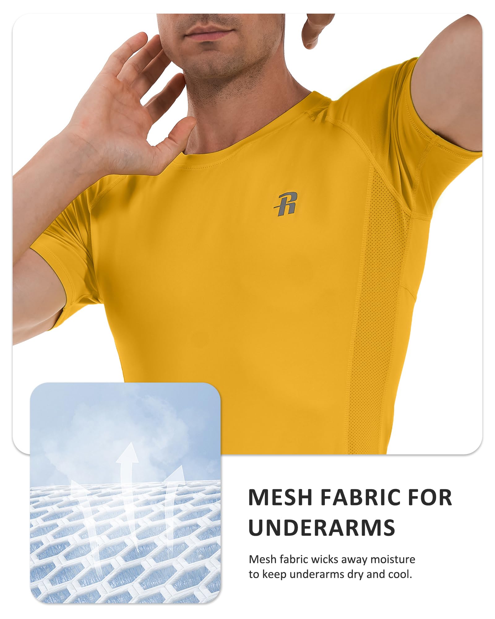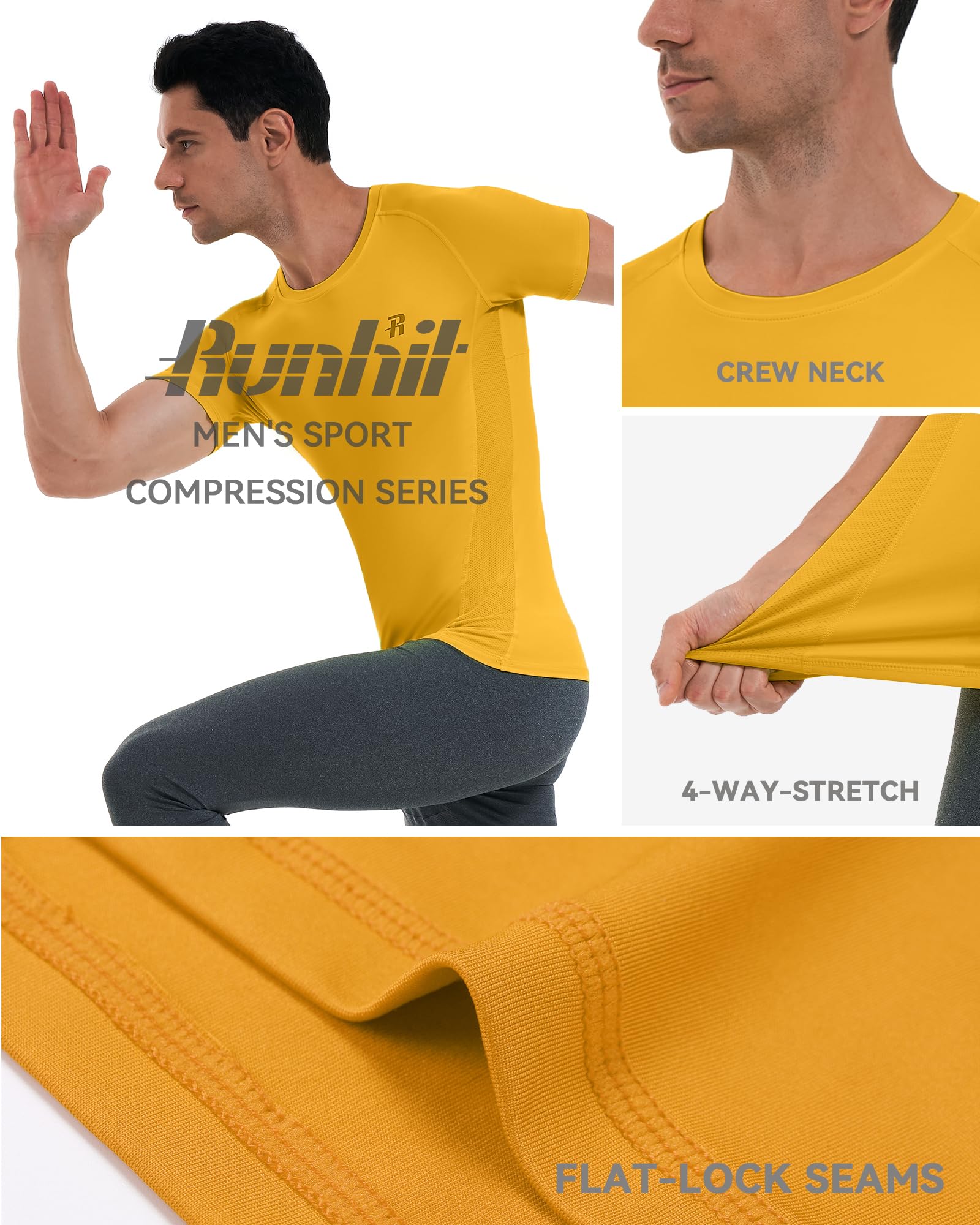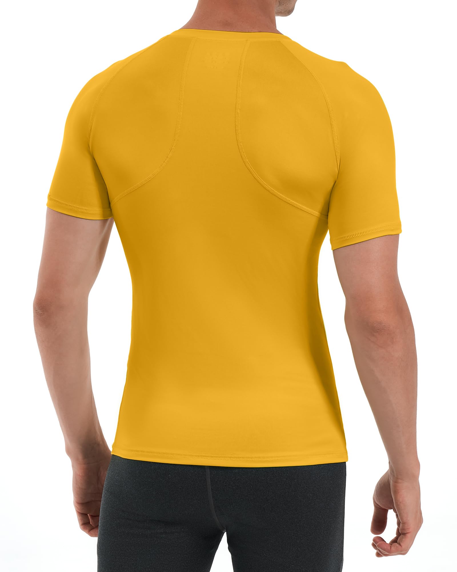 [Four-Way Stretch]: This men short sleeve compression shirt snugly conforms to your skin, providing stable support and helping to reduce muscle fatigue. Smooth flatlock seams and tagless design help minimize friction, ensuring a pleasant and comfortable experience during physical activities.