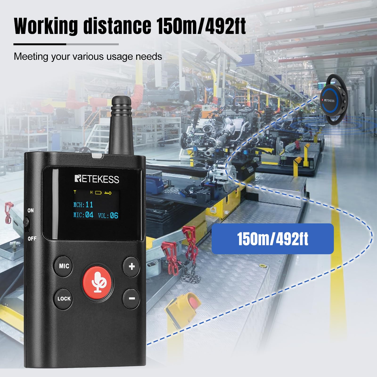 Efficient collaboration; for teams working in large areas; the 492ft of ear receiver working range fosters efficient collaboration; share ideas; coordinate tasks; and resolve issues in real time; boosting productivity and teamwork
