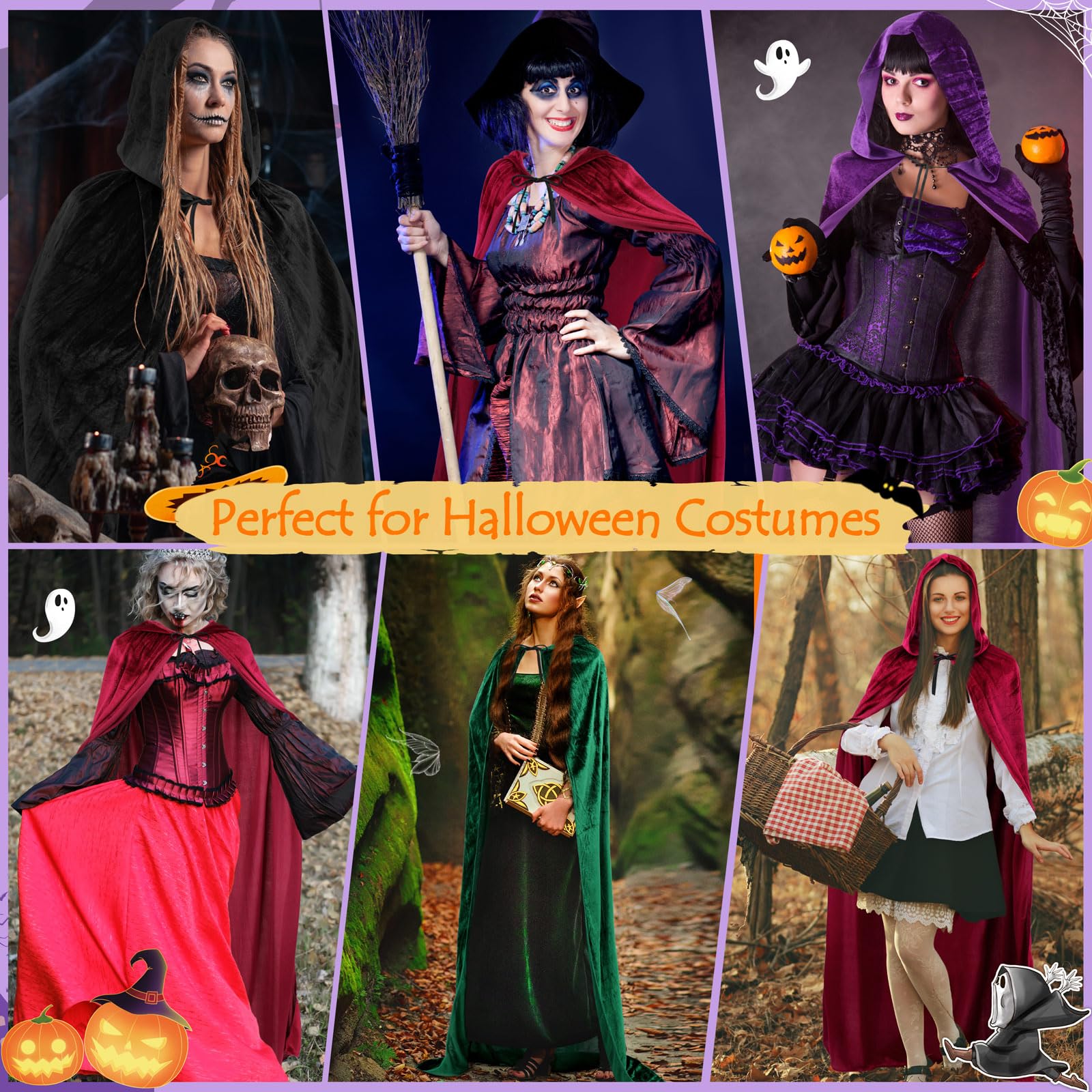PERFECT GIFT CHOICE: These unisex velvet cloaks are the perfect gift for Halloween, Renaissance Festival, costume party and so on. The gothic witch costume for women can be easily match with any clothing, it's a perfect Halloween accessory! As a gift, your family or friends will love it! You can play the vampire family, witches sisters or others roles together, then you will have a lot of fun!